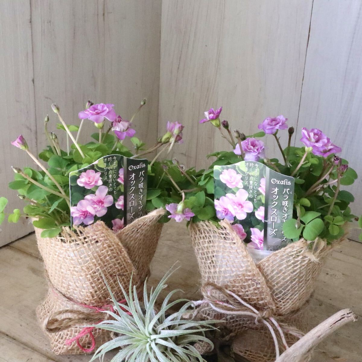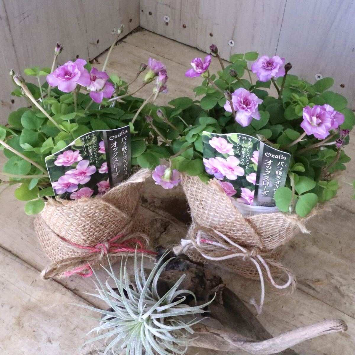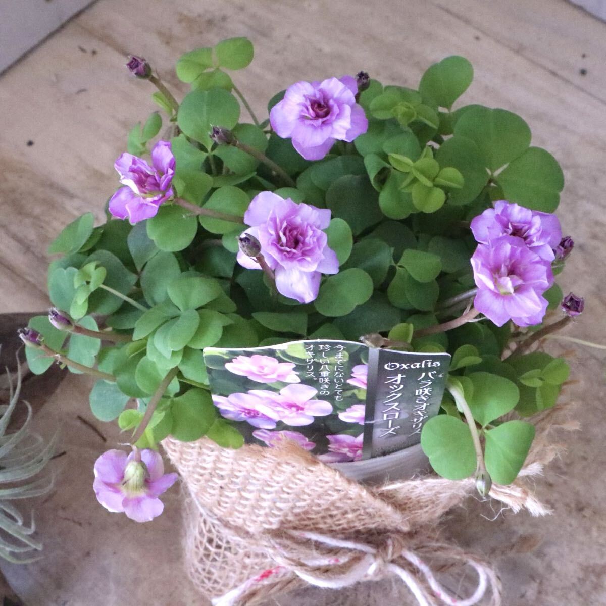 一般的なオキザリスは、朝、晩は花を閉じますが、八重の花なので花が閉じることなく咲いています。