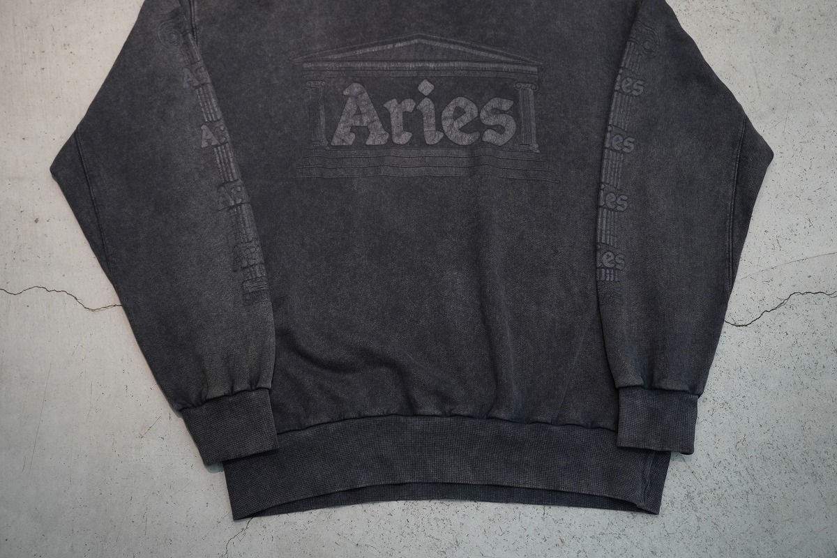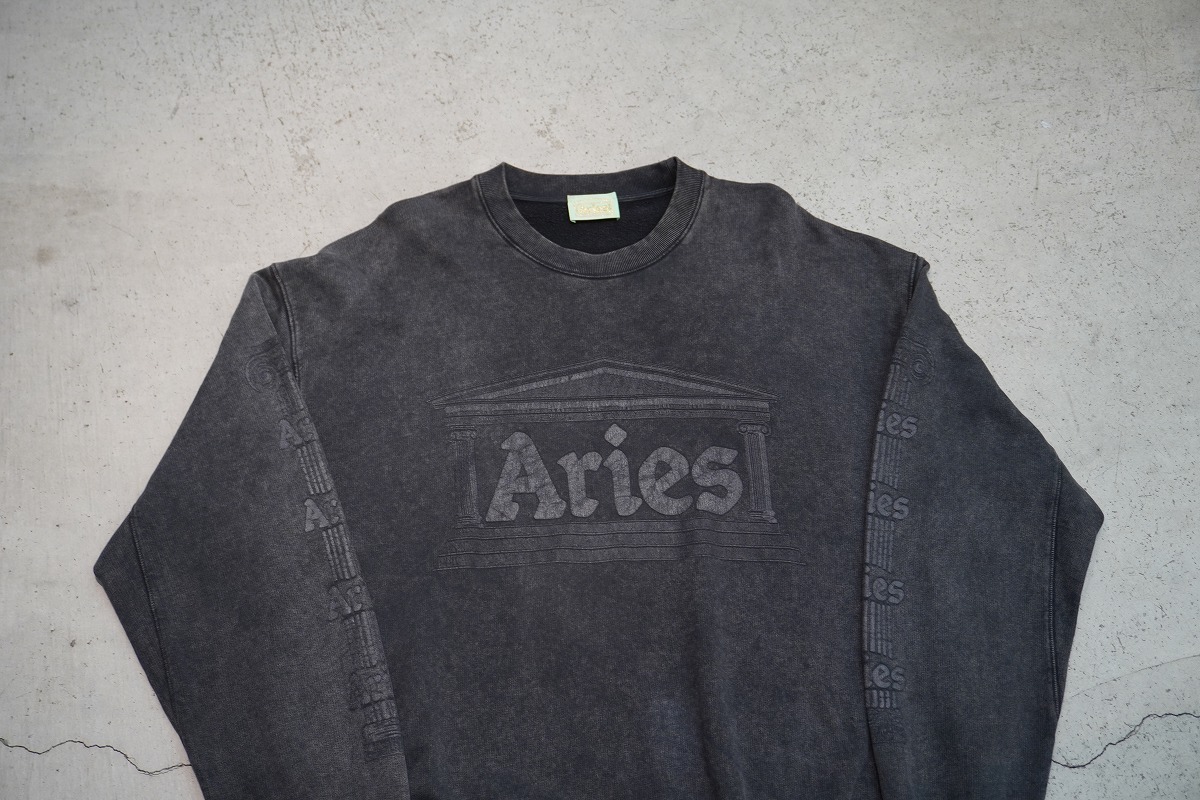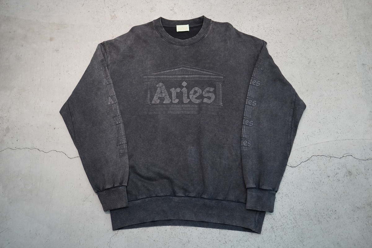 Aries アリーズ アリエス Aged Ancient Column Crew Neck Sweatshirt 長袖 テンプル スウェット ウォッシュ加工 SUAR20033 黒灰です。