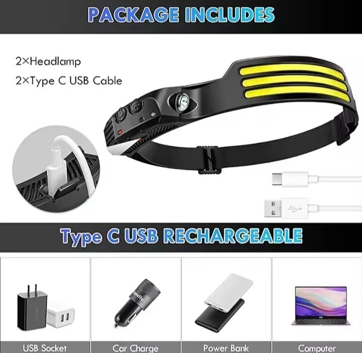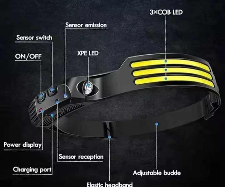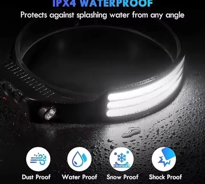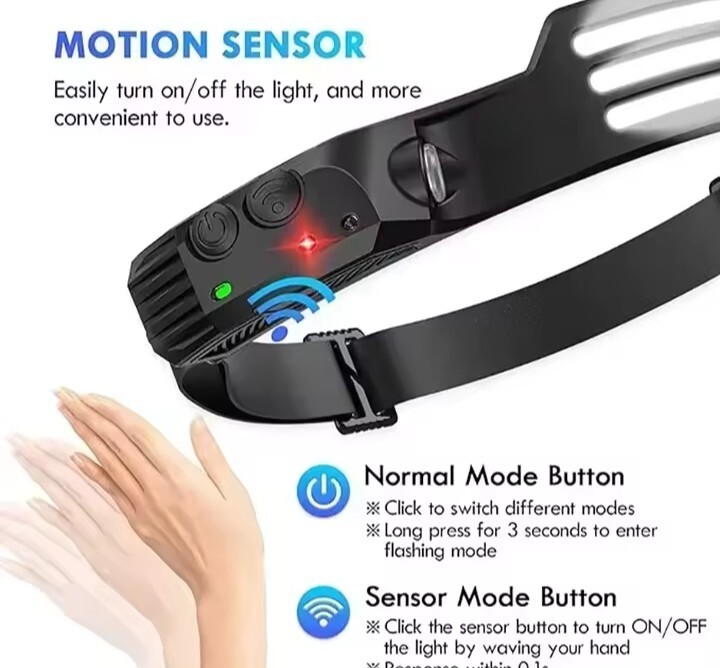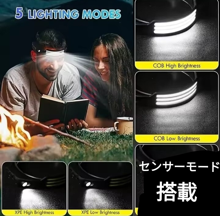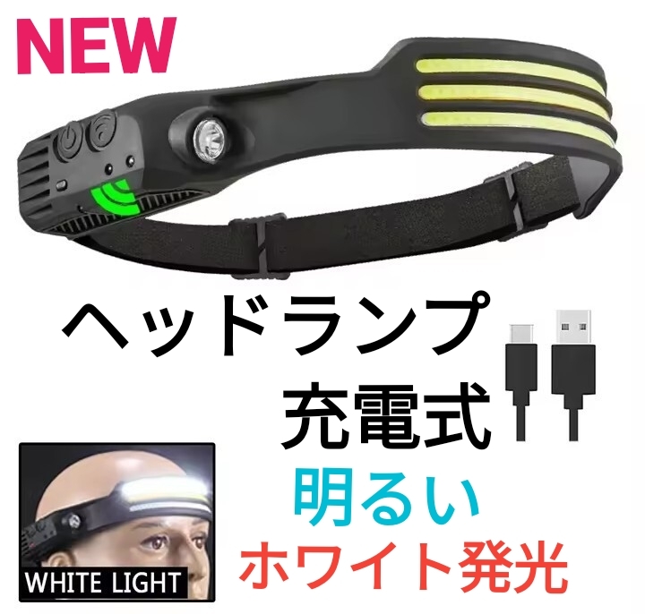 ヘッドランプ 高輝度 USB充電式 センサーモード搭載 IPX4防水 軽量 5モード ホワイト色発光 !