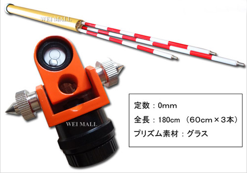 ピンポール付きで便利なセット品! 測量ミニプリズムピンポールセットです。 【仕様】 定数:0mm ピンポール:60cm×3 ピンポール径:10mm コーナーホルダー付  |