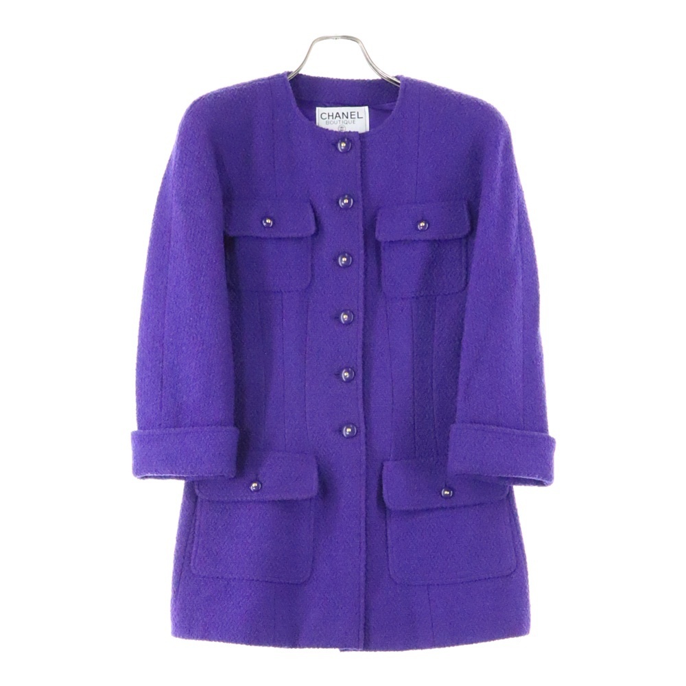 CHANEL シャネル 95AW ココマークボタン ウールツイード ノーカラー ロングジャケット パープル レディース P05336V04303