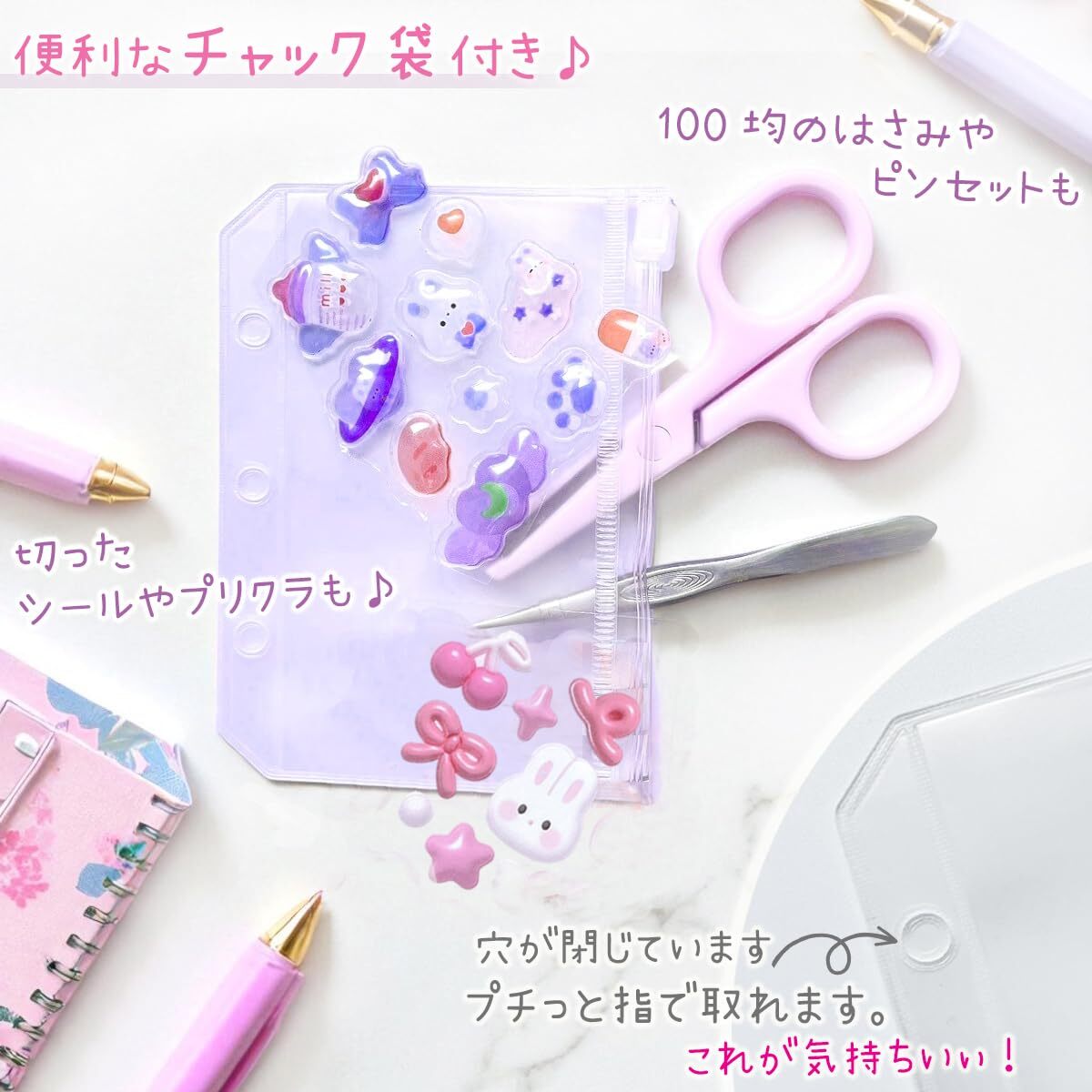 【新着商品】はがせる シール専用台紙 6枚 チャック袋付き【小さいカバンに入るA8 シール帳 サイズ】 紫 プリ帳 透明 推し A