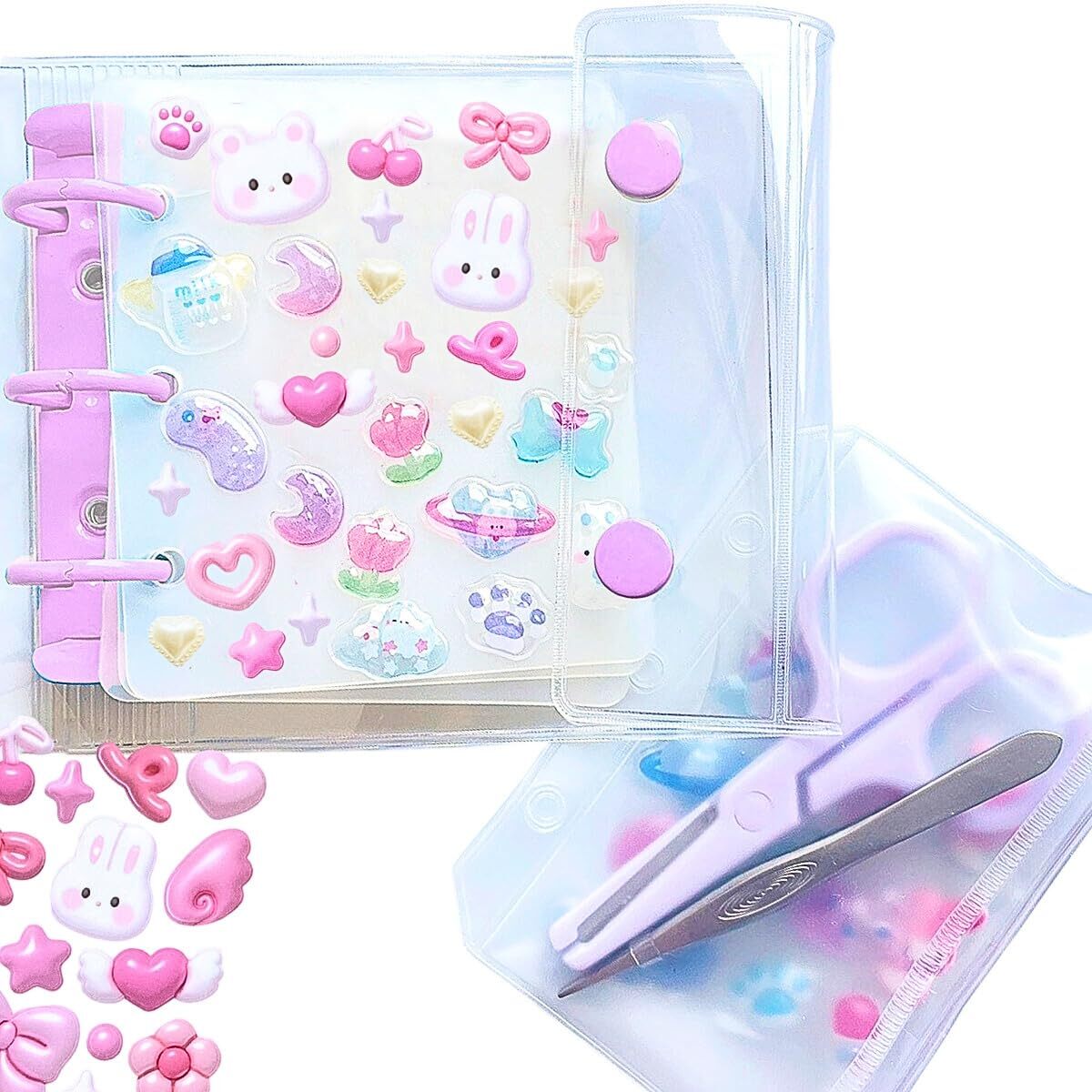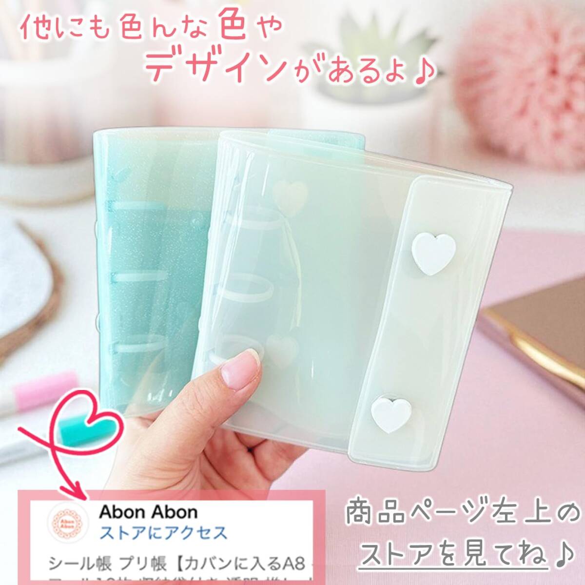 【商品説明】シール帳や推し活にピッタリのA8型バインダーです。貼りやすくて剥がしやすいシール専用台紙(プラスチックシート)6枚とセット!シートは表面がザラザラしていて剥がしやすく、折れないしっかり厚みのあるシートです♪ 収納袋には切ったシールや100均の小さなはさみなども入れられて便利。 A8ってどんなサイズ?大きく広げた手のひらに収まるサイズです。持ち運びにピッタリで、ちいさなカバンにも入ります。推しカラーで揃えられるように、カラーバリエーションも増やしていく予定です!追加でシール台紙も購入できます♪ 大好きなシールと一緒に出掛けて交換も楽しもう♪