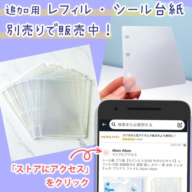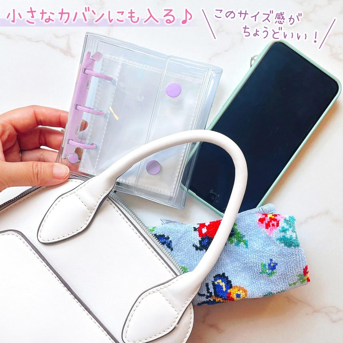 AbonAbon シール帳 はがせる シール専用台紙 6枚 チャック袋付き【小さいカバンに入るA8 サイズ】 紫 プリ帳 透明 推し カラー ファイル プリクラ (パープル)