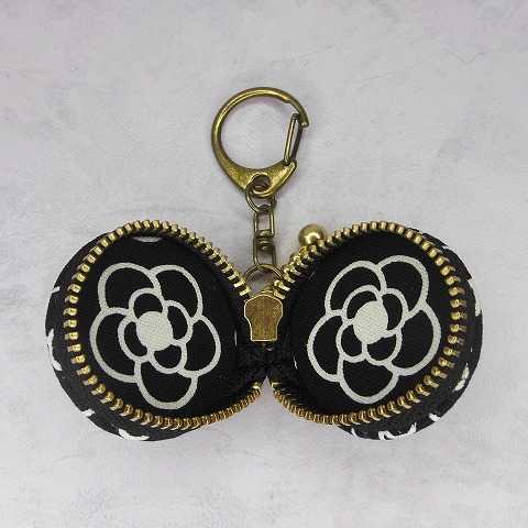 ○マカロンコインケース○カメリア柄 ブラック 40㎜○ハンドメイド お薬入れ 小銭入れ