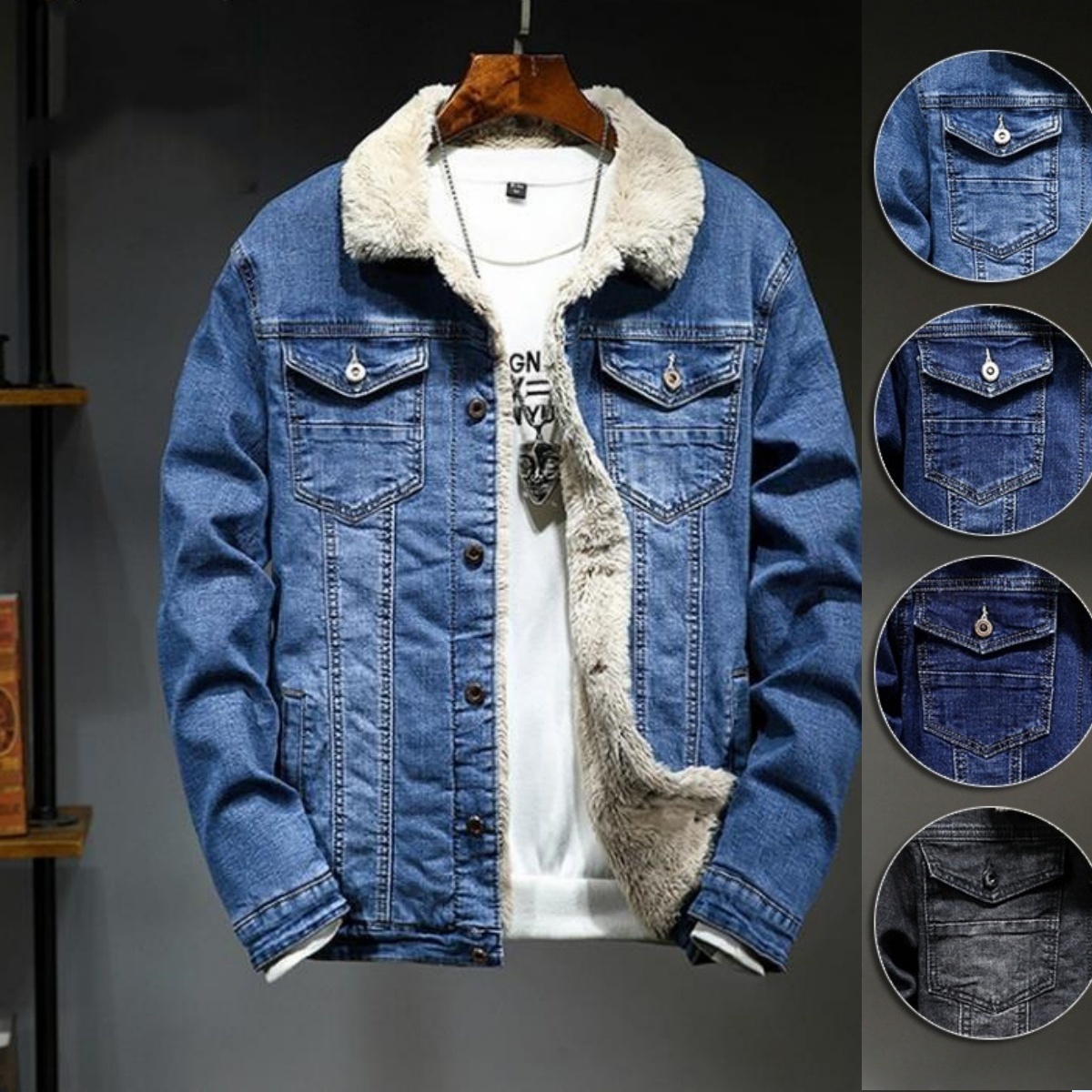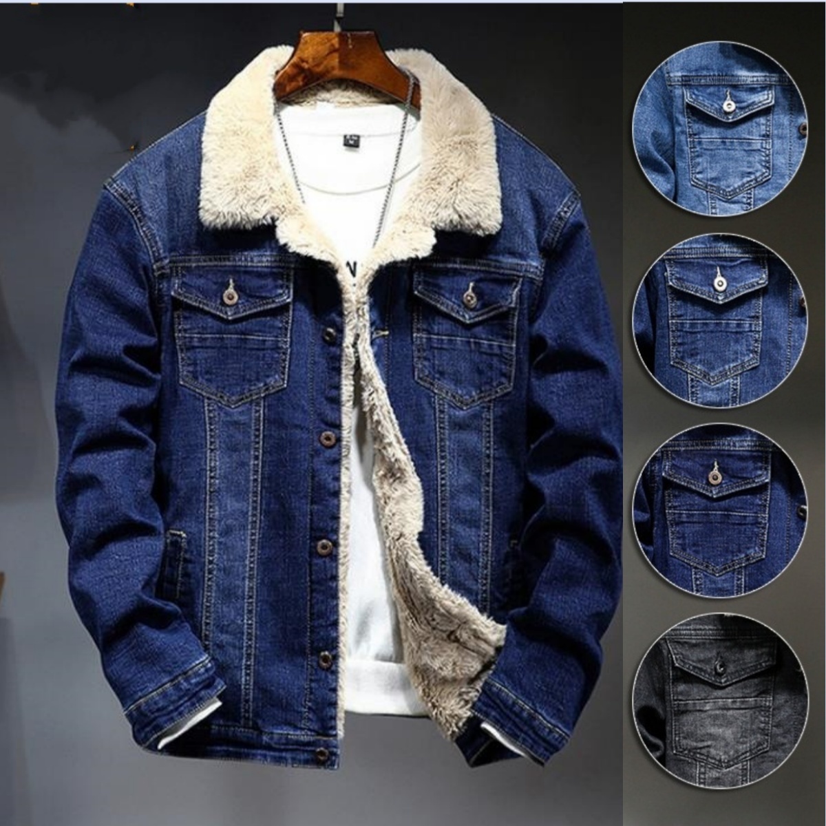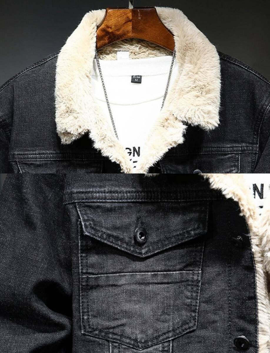 裏フリース デニムジャケット 新品・メンズ 裏ボア ジージャン バイクジャケット 作業服 ライトアウター 冬用 ブルゾン【DS919#】ダークブルー XL