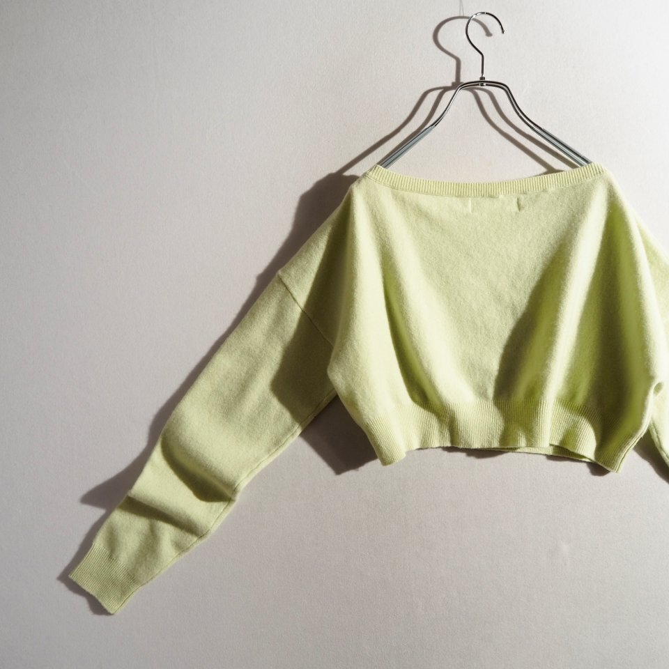 23SS short pullover カシミヤナイロン オフショルダーニット グリーン