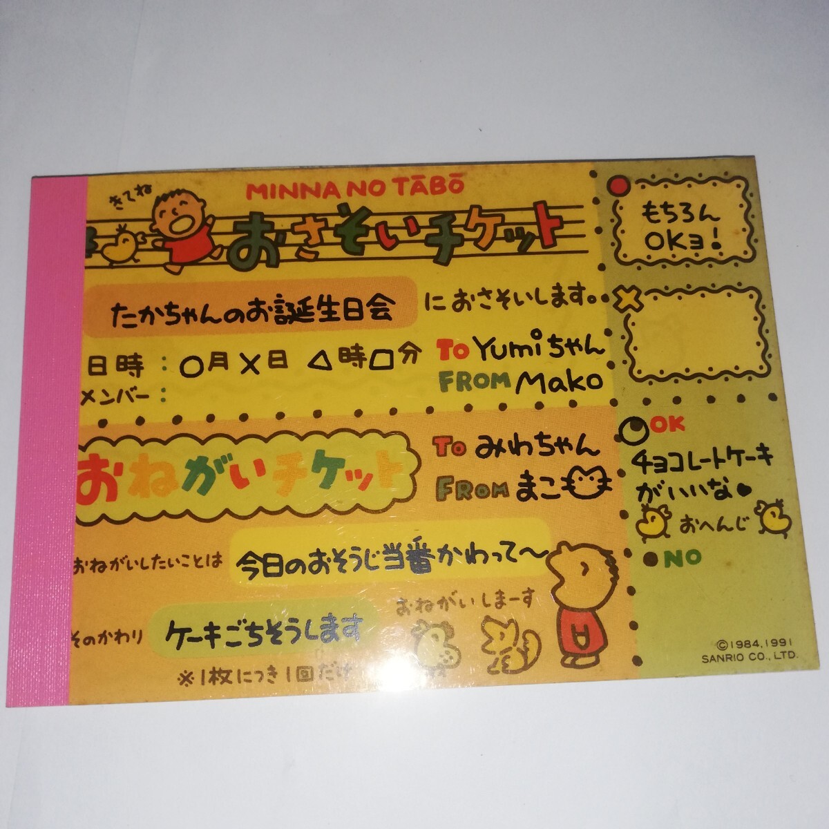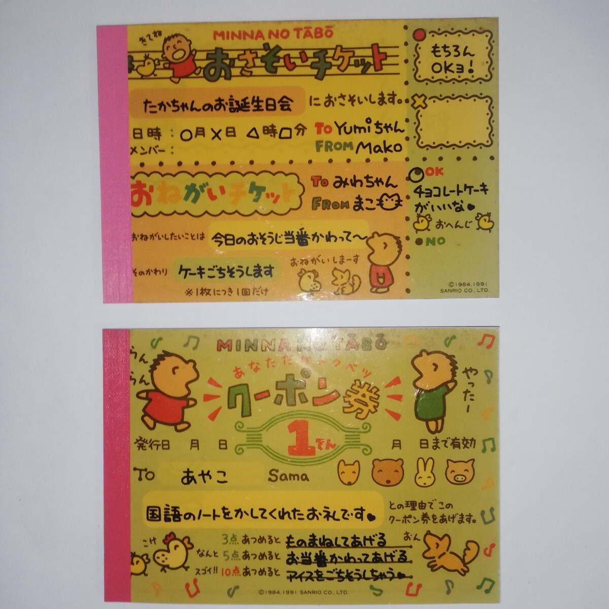 ☆みんなのたぁ坊 あなただけトクベツ クーポン券/おさそいチケット 計2種 ☆1991年 当時物 イタミあり現状品 ☆サンリオ