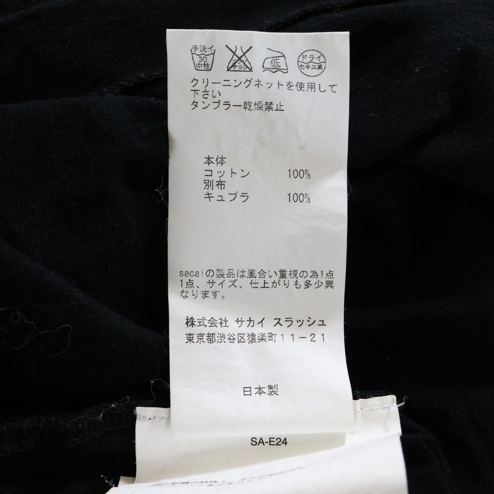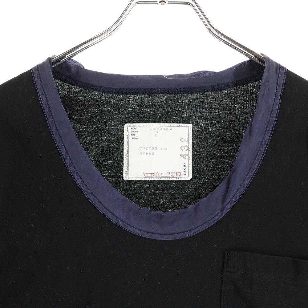 Sacai サカイ キュプラ切替ネック ポケット付き 半袖Tシャツ カットソー ブラック 13-00432M