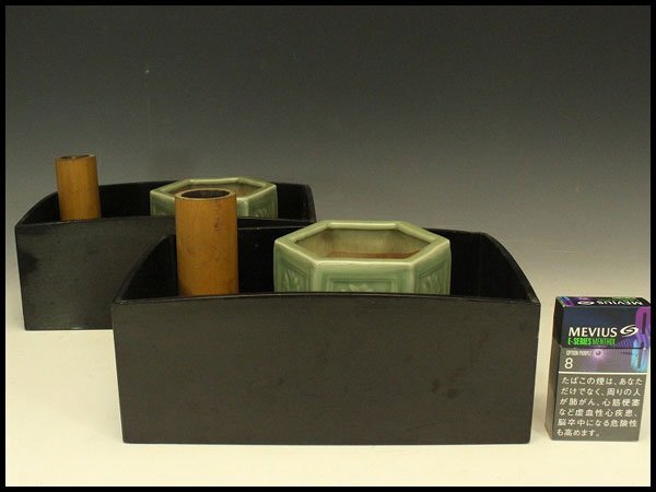 煙草盆25.7cmx17.1cm 高10cm 青磁12.2cmx10.5cm 高10.5cm 【多少の誤差はご容赦下さい】 |