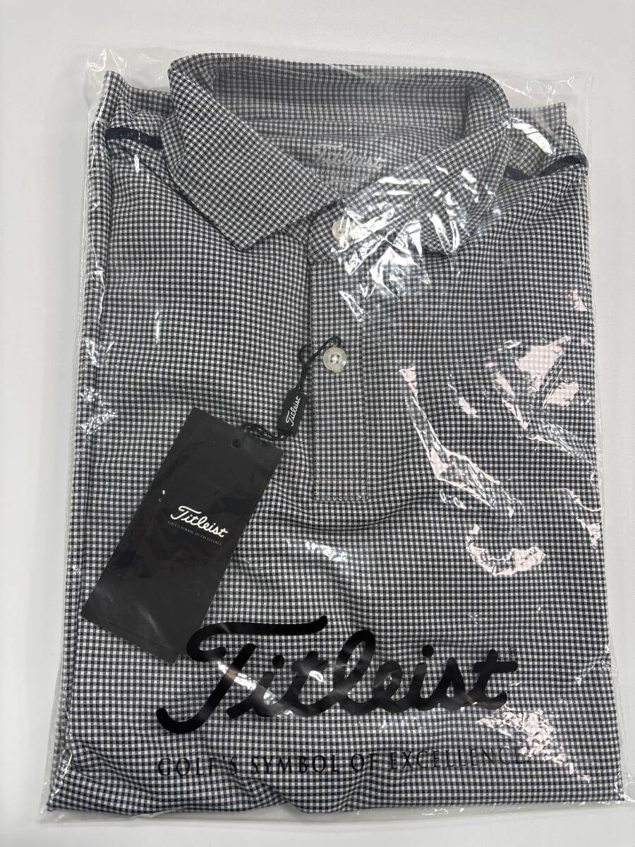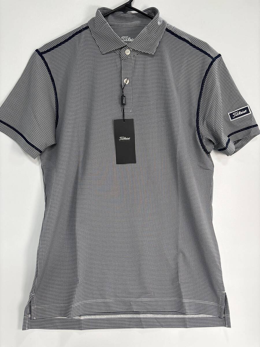 【新品 未使用 タグ付き】タイトリスト Titleis ギンガムチェック柄 Mサイズ 吸水速乾 半袖ポロシャツ ネイビー