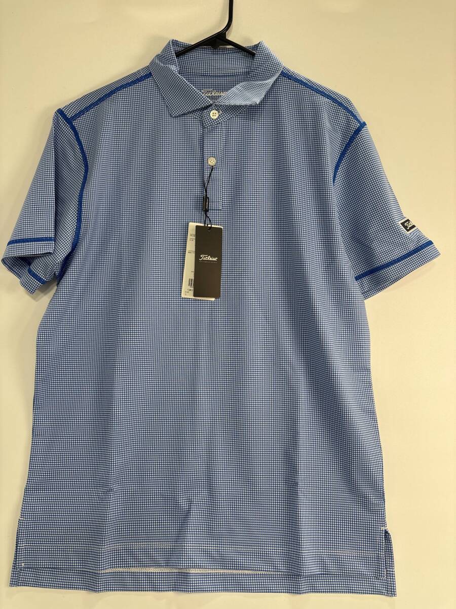 【新品 未使用 タグ付き】タイトリスト Titleis ギンガムチェック柄 Lサイズ 吸水速乾 半袖ポロシャツ ブルー