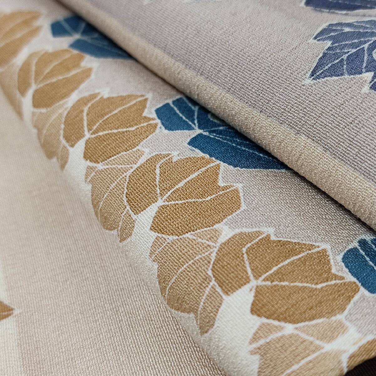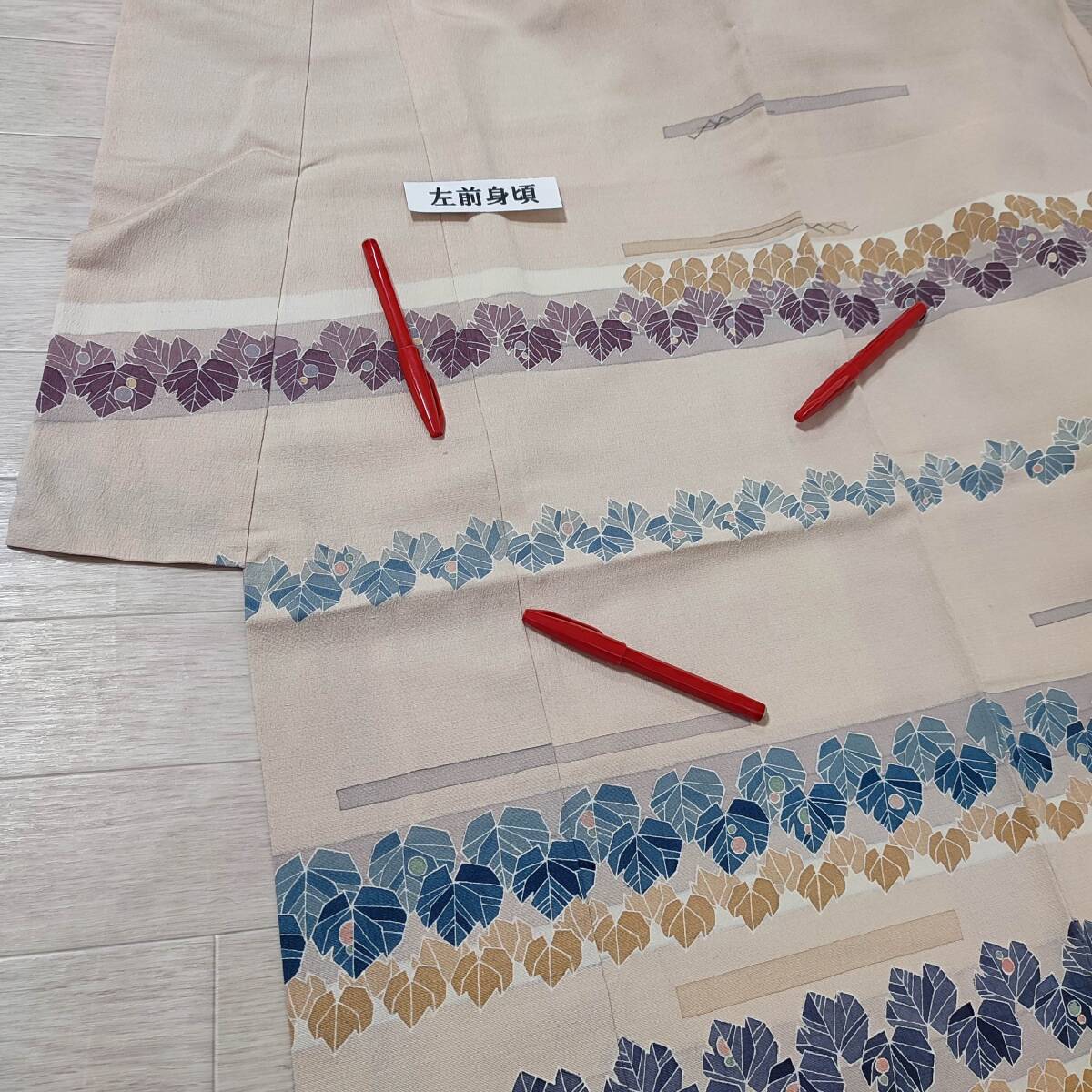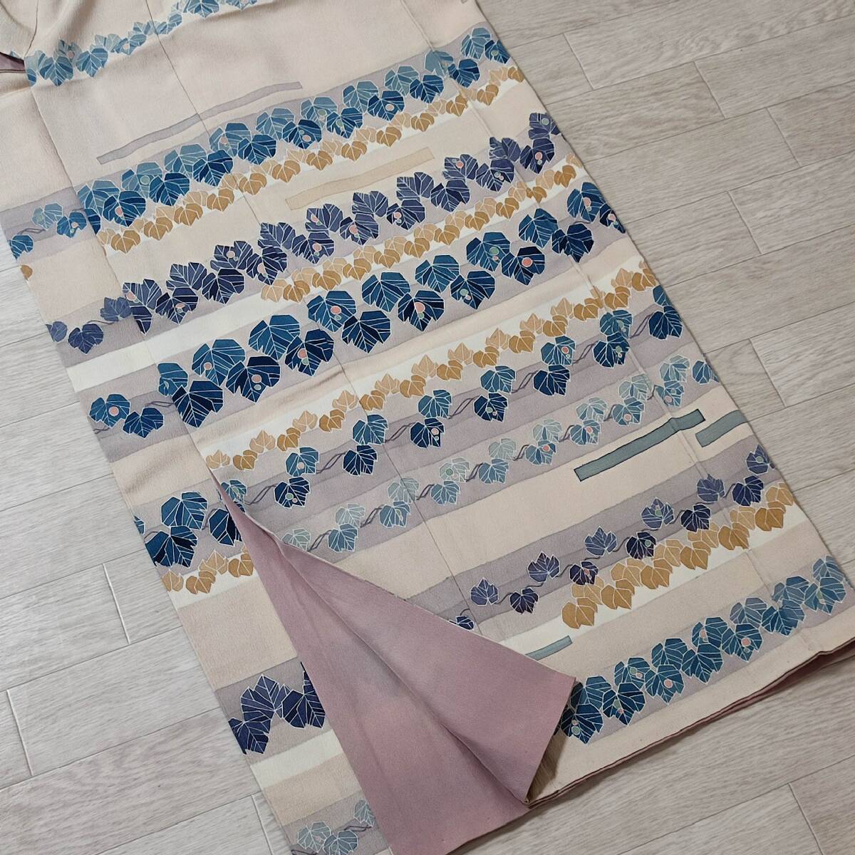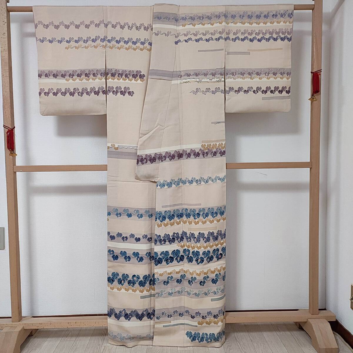 即決■着物の越田■裄65身丈165.5 正絹 付下げ 袷 葉 蔦 ベージュ系■も05E03