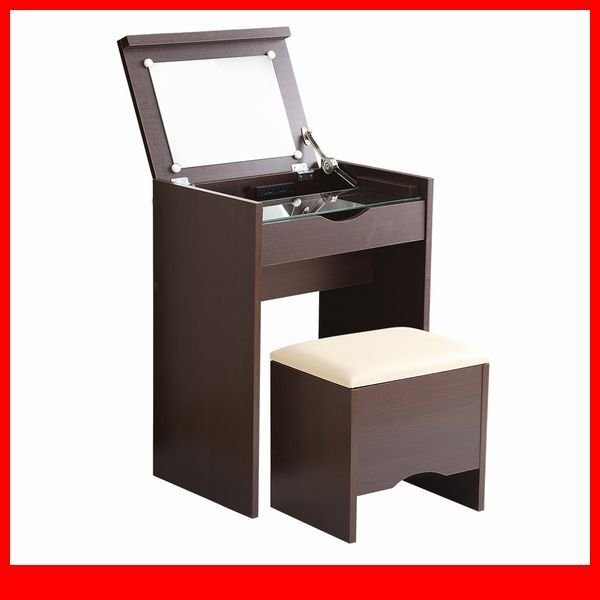 | 【ポイント】 ドレッサーが欲しいけどスペースに困る…という方にオススメです。 リビングにも置けるコンパクトサイズ! その上、スツールとコンセント付きなので、その場でサッとお支度OK! ミラー付き天板を閉じればデスクとしても使えます。 美しい木目調のホワイト、ナチュラル、ダークブラウンの3色からお選びください。 |