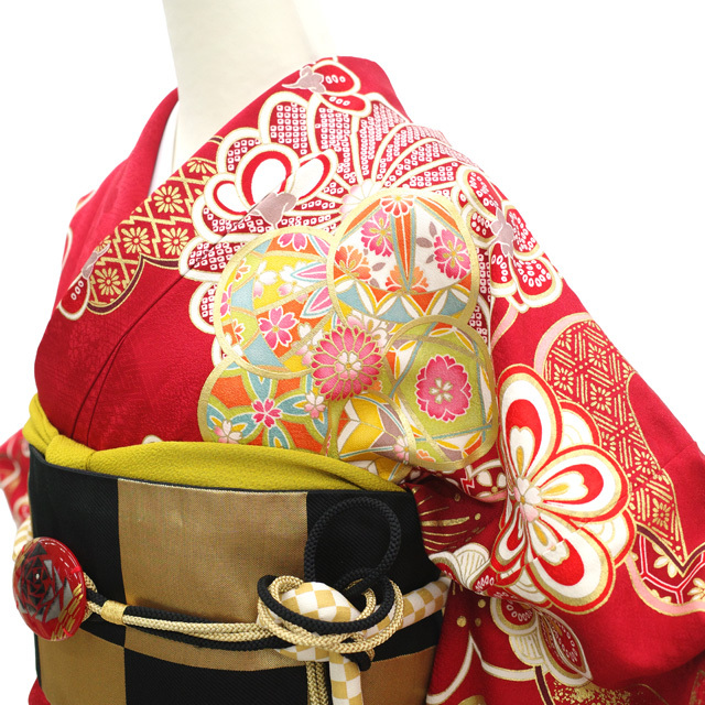 華やかさの中にも気品が漂い、成人式や結婚式などフォーマルな場面にふさわしい一着です。