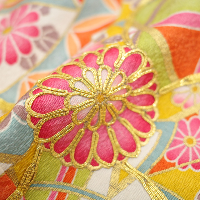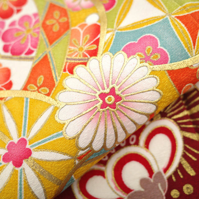 梅・菊 の花が優美に染め上げられ、晴れの日にふさわしい気品を感じさせます。