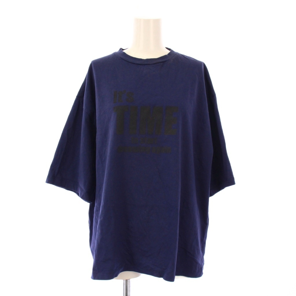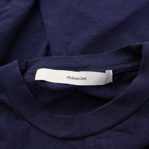 フレームワーク Framework 23SS Tシャツ 半袖 クルーネック ストレッチ ロゴ プリント F 紺 ネイビー /BB レディース