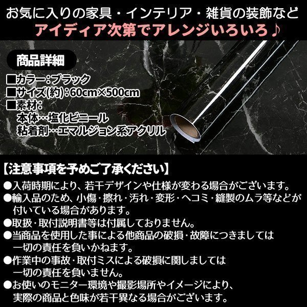 大理石シール 壁紙 カッティングシート耐熱シート 耐熱 防油 防カビ浴室 壁紙 大理石調 壁紙シール リメイクシート60cmx長さ5m ブラック