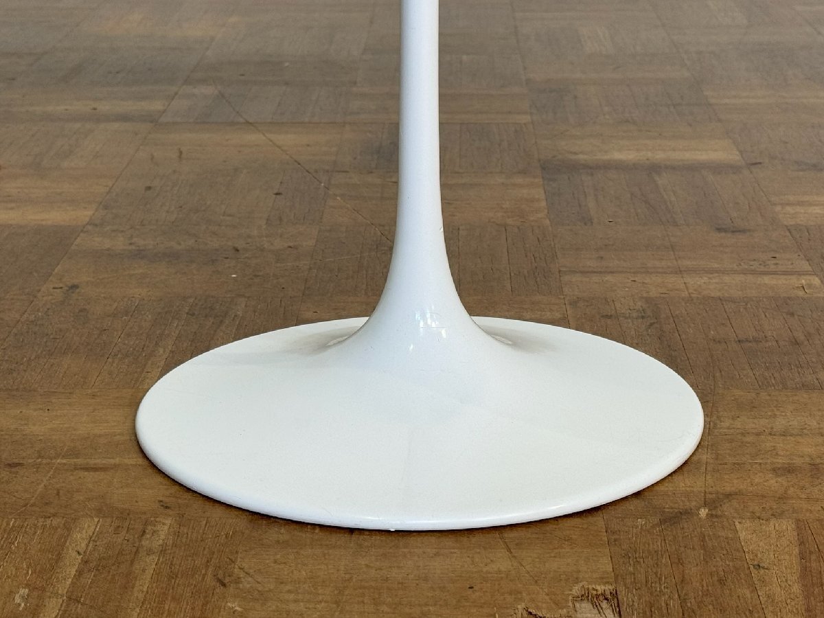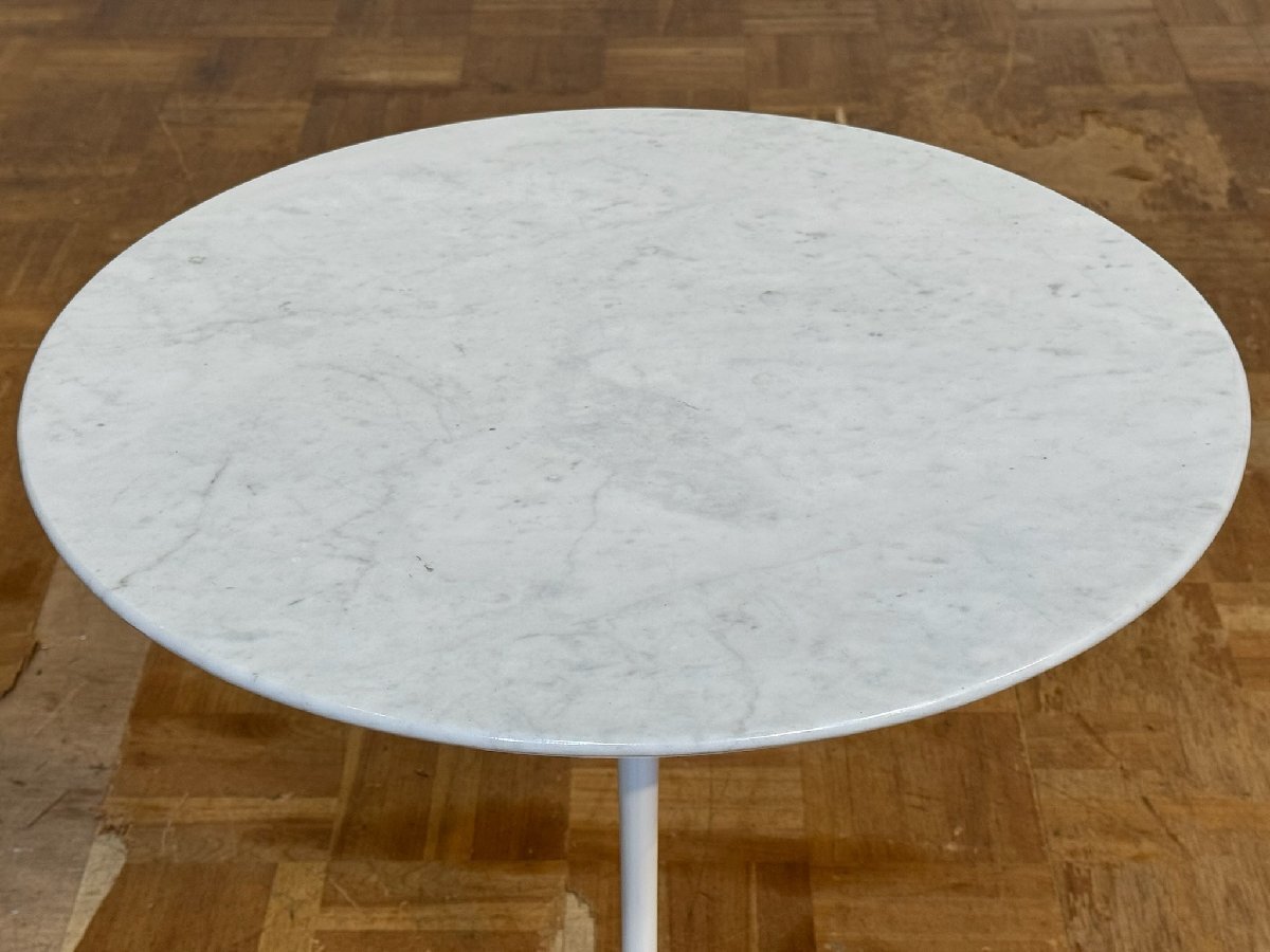 支柱とベースを繋ぐ、地中から萌え出るようなすっきりと艶やかなベースデザインで、プロダクトデザイン史に燦々と輝くリーディングケースとして知られる、通称 "チューリップテーブル"。Knoll より。Arabescato marble / アラべスカート大理石トップ仕様品のご提案。
