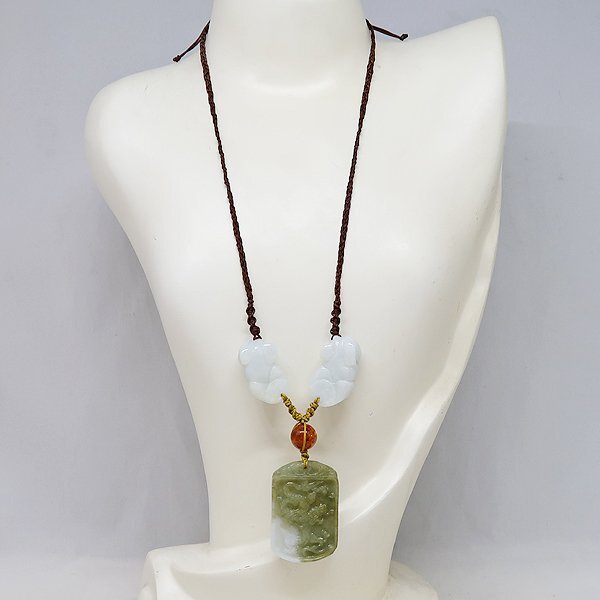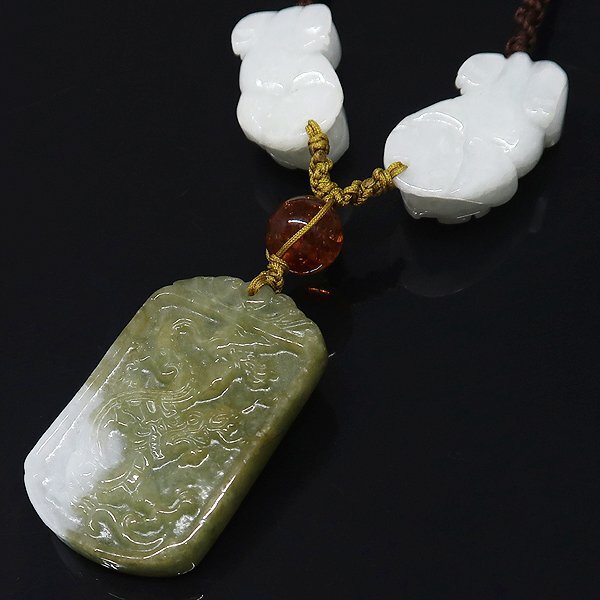 DKG★送料無料 BNS82★ ミャンマー翡翠 ドラゴン 竜 龍 ヒスイ 彫り物 ペンダント ネックレス 翡翠ネックレス 約65cm 約80.7g