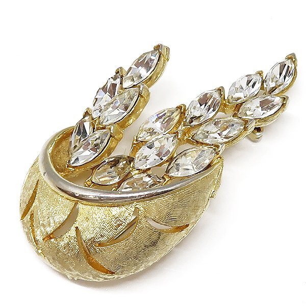 DKG★送料無料 BVA498★ 美品 マーキスカット ラインストーン ゴールドカラー デザイン ブローチ コスチュームジュエリー