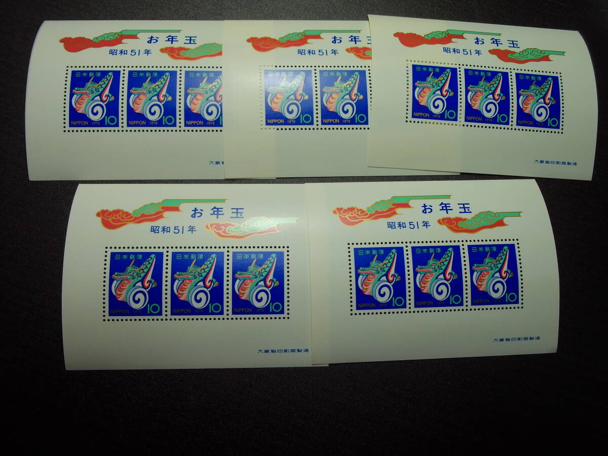 年賀切手   たつぐるま   5シート1セット 極美品   カタログ値750円   昭和51年用