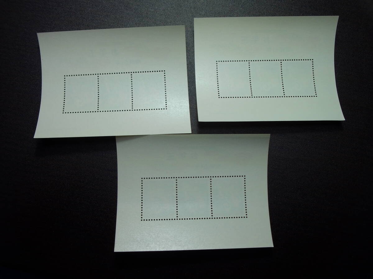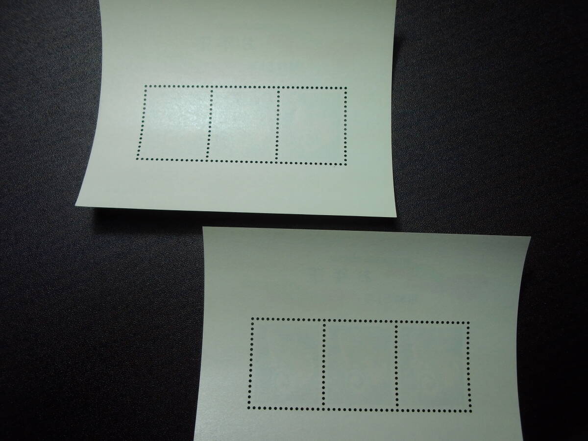 この頃の切手は丸まりやすいので目打ち離れ、折れをおこしやすいです。また、この頃の切手はグラビア印刷の特徴としてヒビ