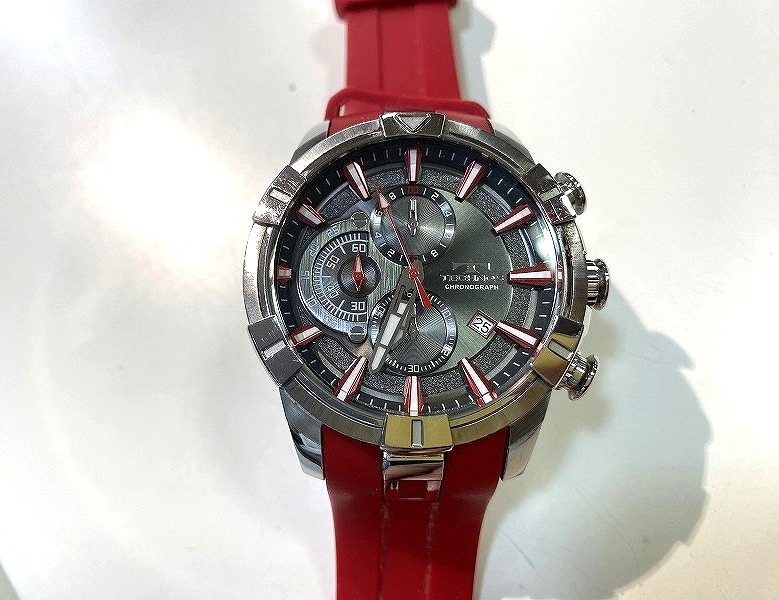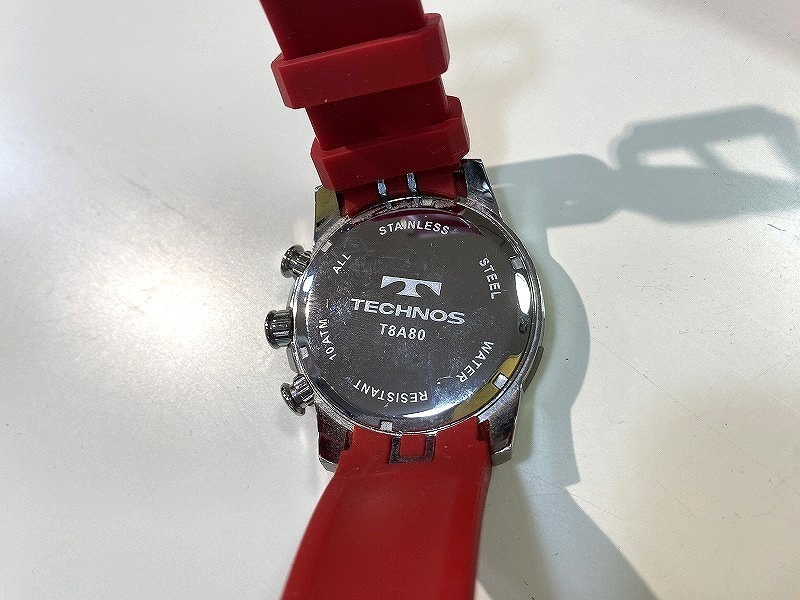 テクノス TECHNOS アナログ クオーツ クロノグラフ 腕時計 ラバー レッド系 T8A80