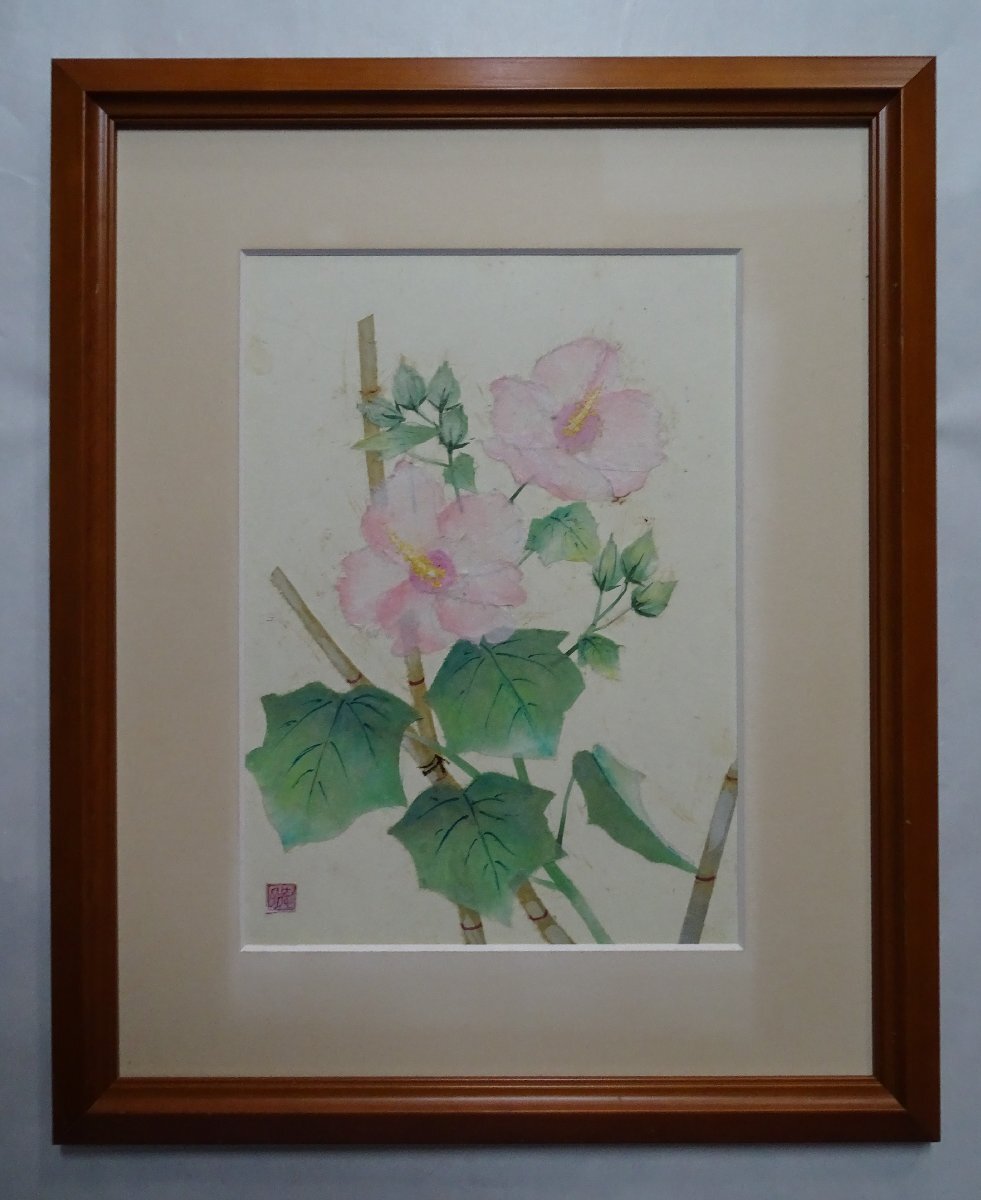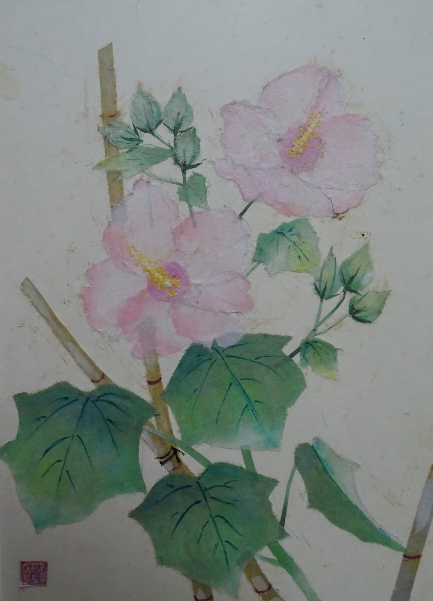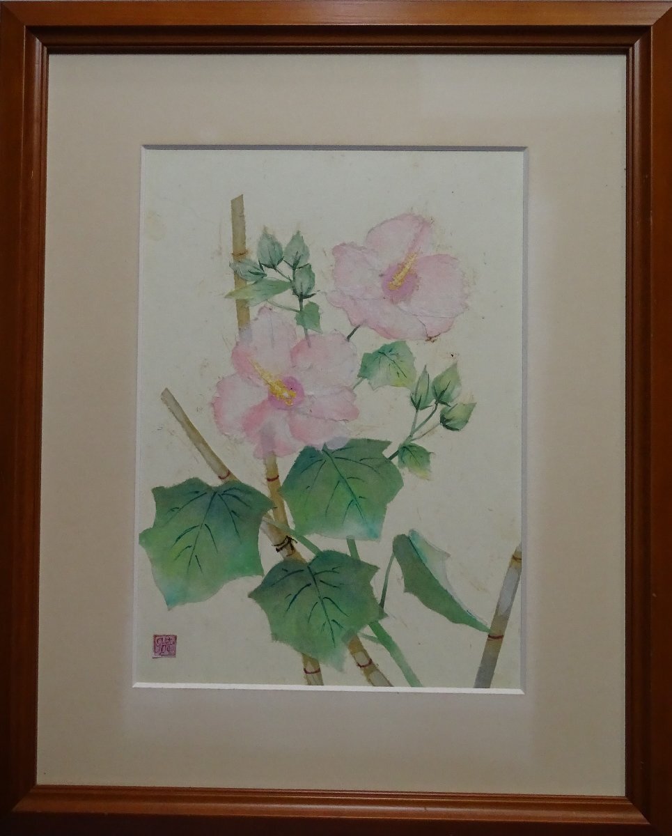 ・作者: 並川徳子 ・画題: 芙蓉の花 ・技法: 和紙ちぎり絵 ・NO-R6-5-6.8