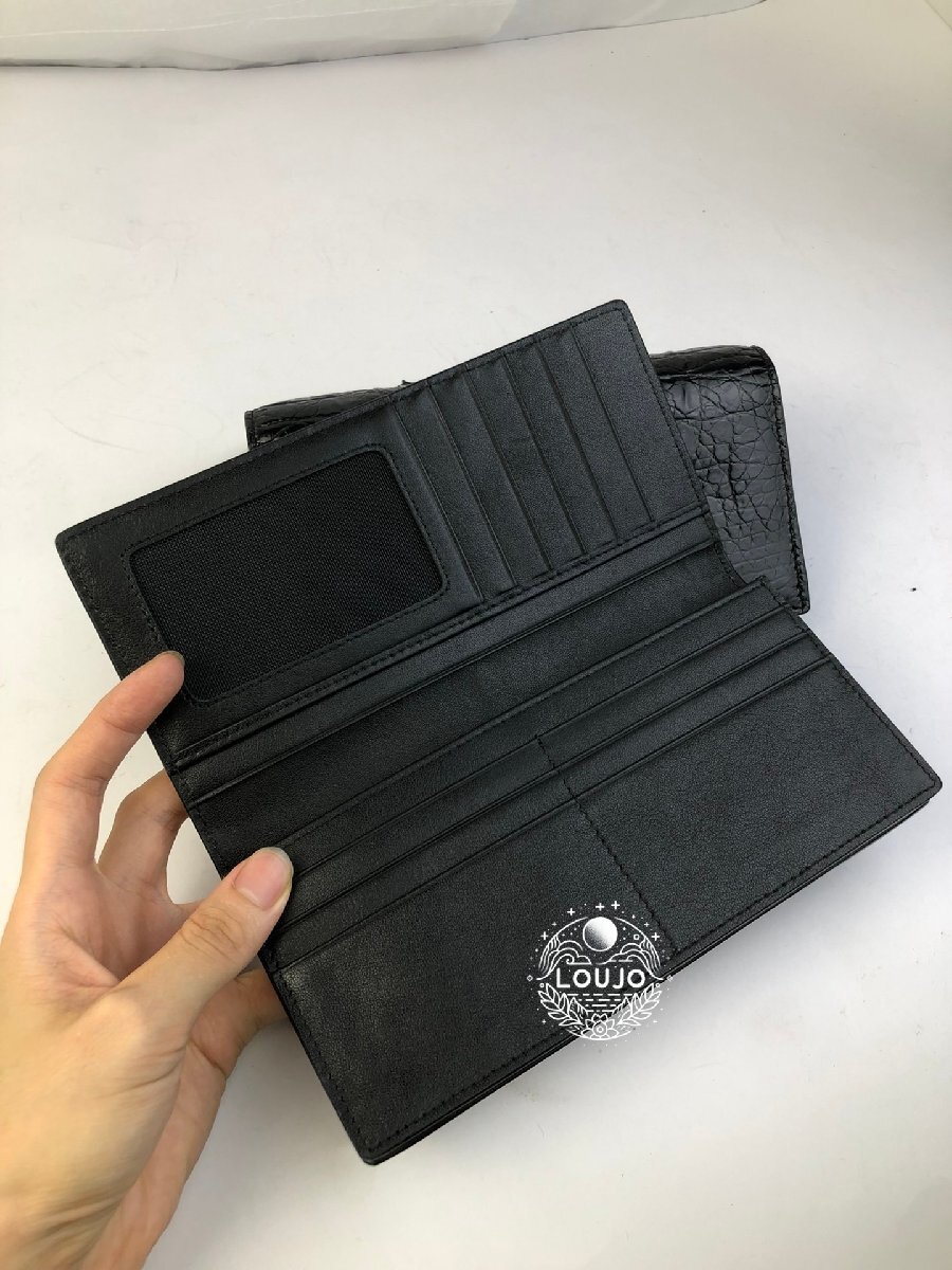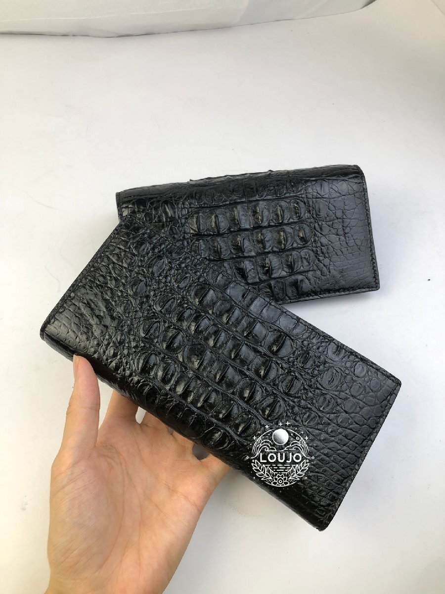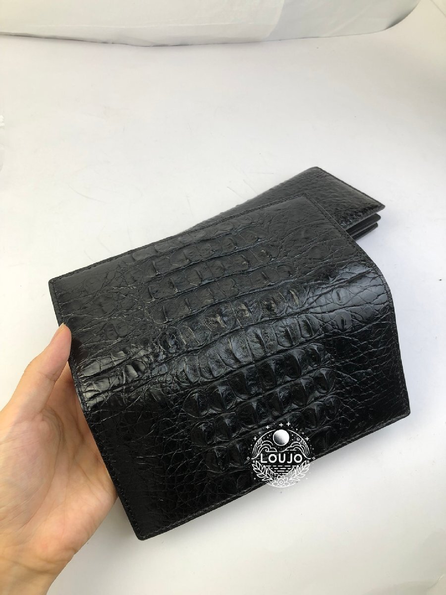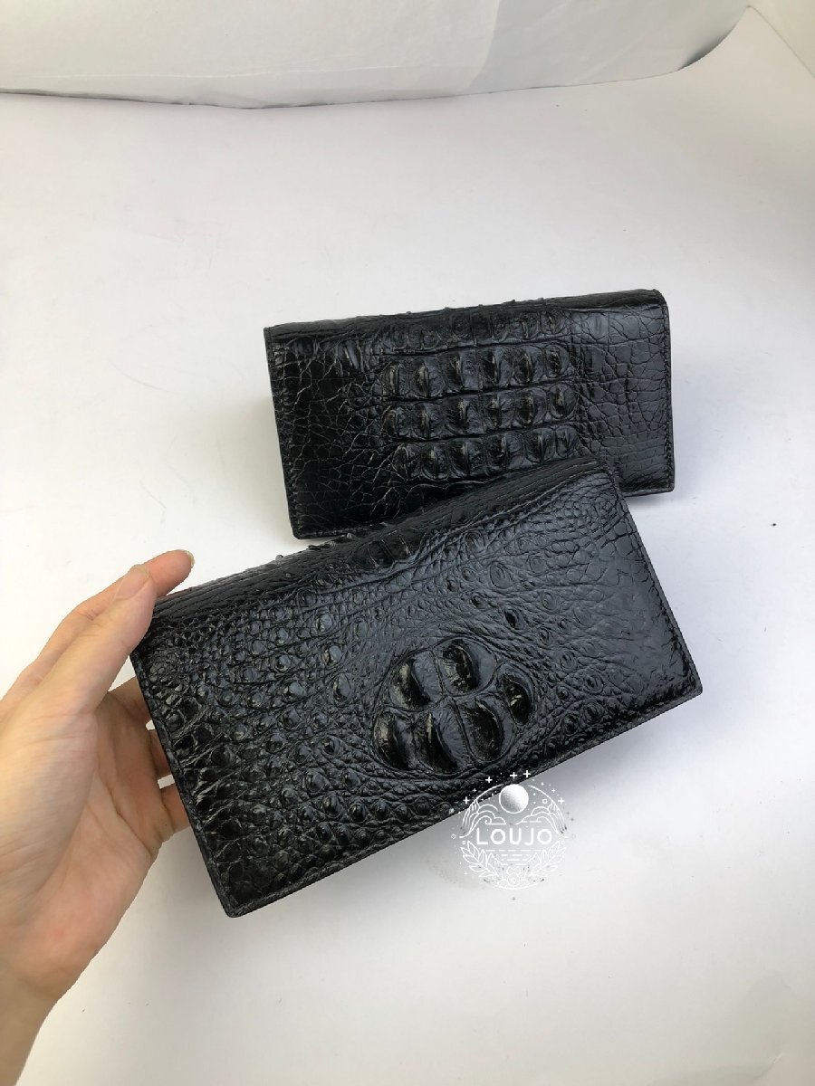 クロコダイル本革 二つ折り財布 札入れ 薄型 一枚革 鰐革 センター取り メンズ/レディース 長財布 黒
