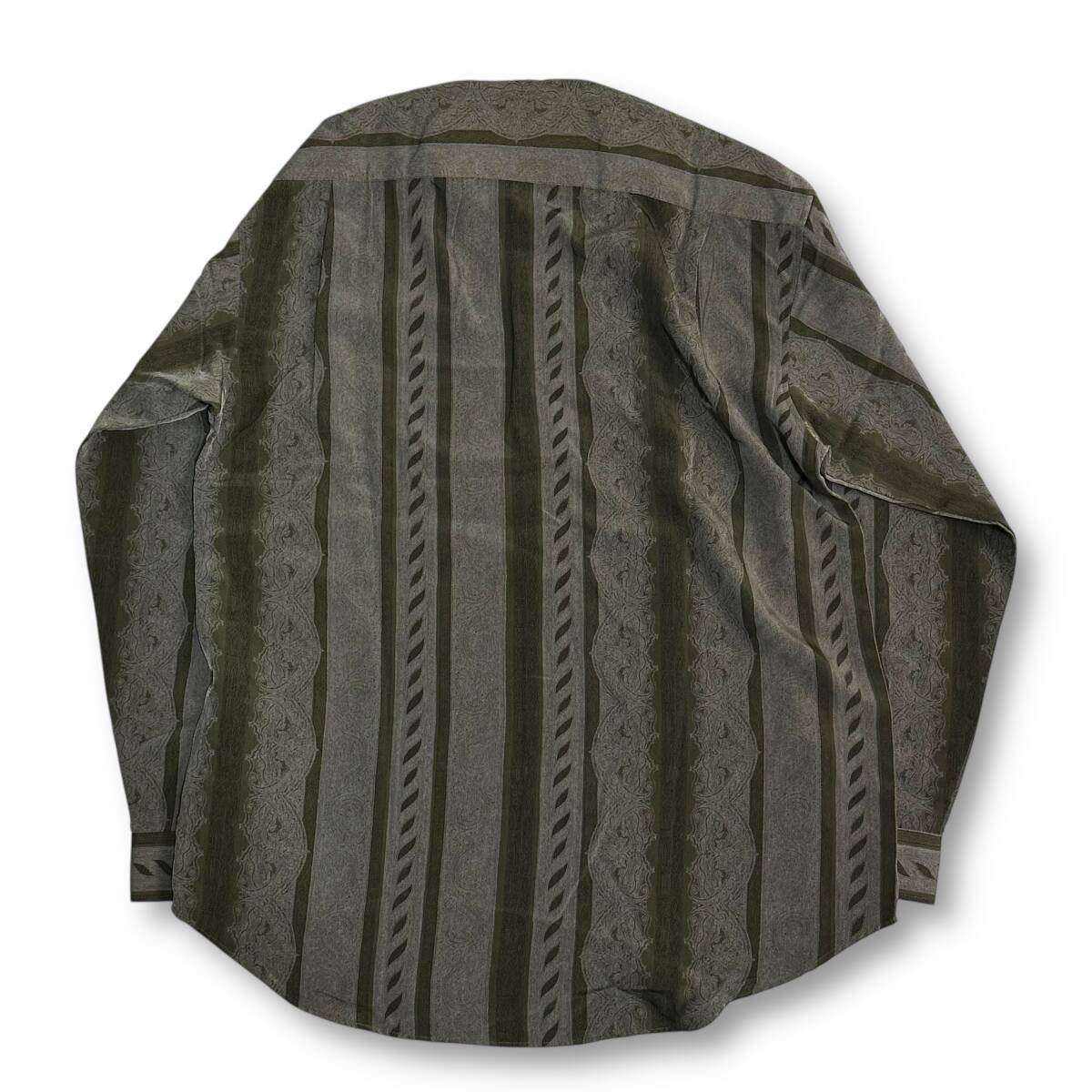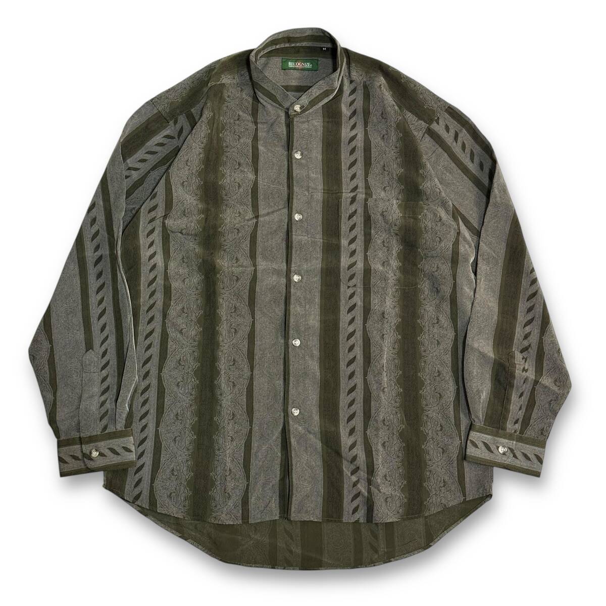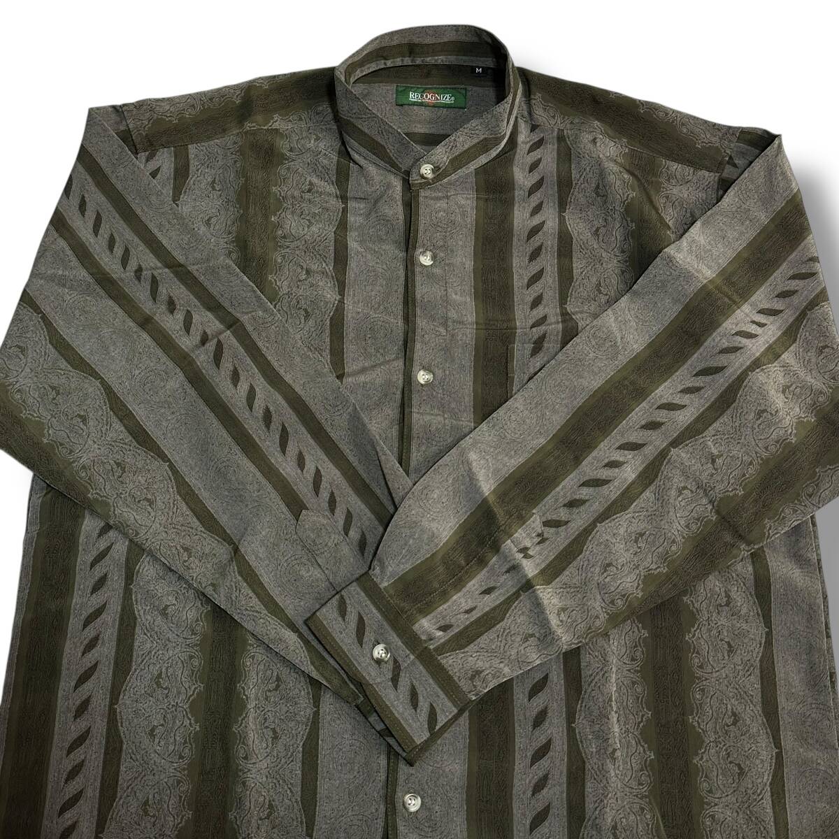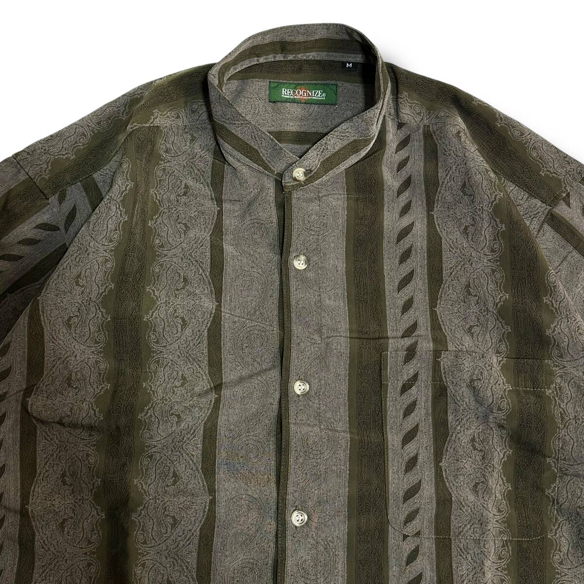 貴重 美品【RECOGNIZE】90s VINTAGE 柄ストライプ ビンテージバンドカラーシャツ レトロ 古着ミックス 長袖シャツ