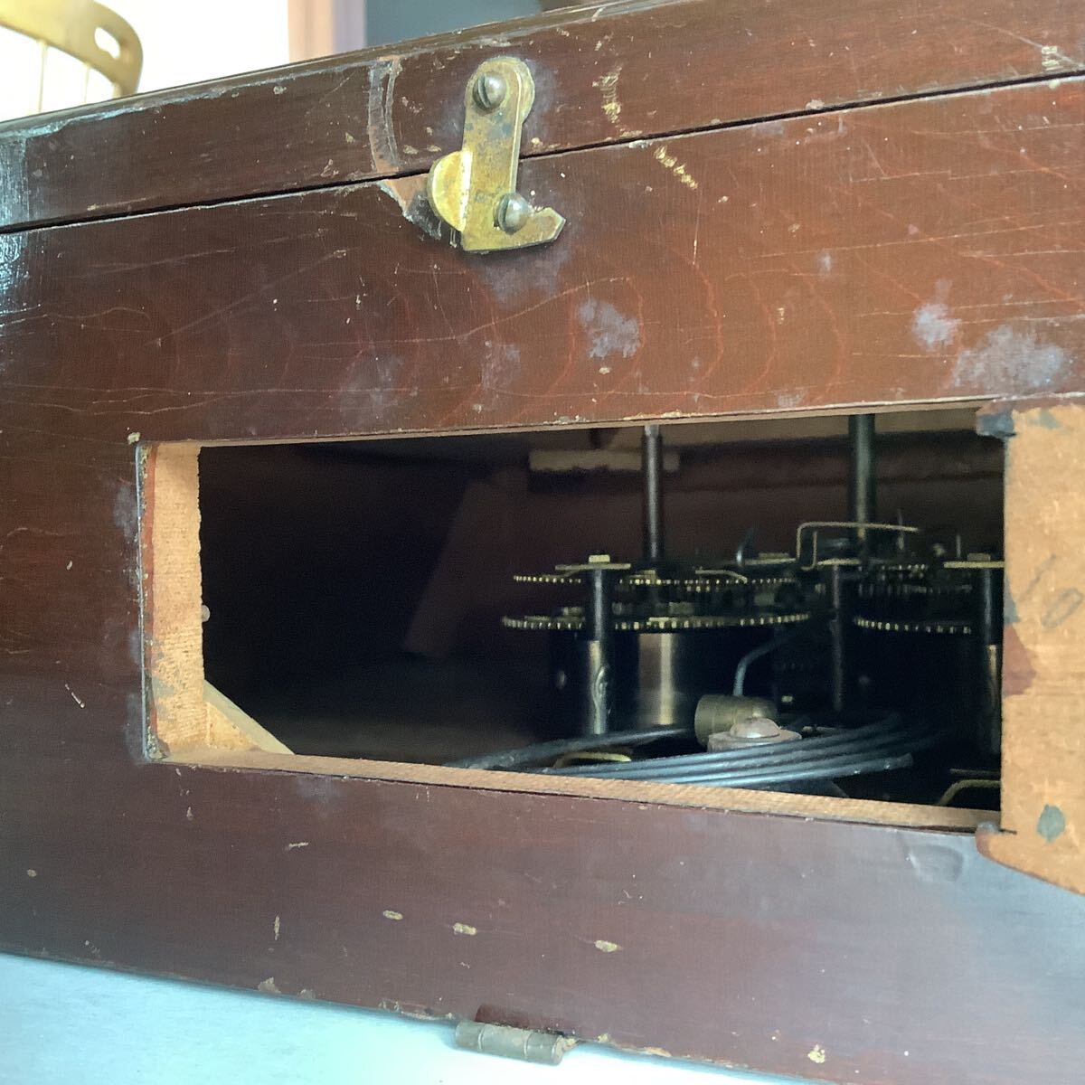 ネジは左右共に少し巻けました 現状でゼンマイはかなり巻いて有ると思います 振り子は付けて動きましたが暫くすると止まります 下の蓋を閉めると振り子の棒が下の蓋に若干接触しますので 振り子を引っ掛ける内部のフックの調整をして下さい 前衛的 アンティーク アールヌーボー アールデコ調 高野時計独自のセンスで今回の時計は左右の側面が波がうねる様なグラマラスで魅惑的な形状がセールスポイントになっています 壁に設置してこのままでもインテリアに良いと思いますが 使用するにはご自分で調整出来る方 時計店でのメンテナンスが必要だと思います。写真でご理解ご判断出来る方のみ御検討宜しくお願い致します。