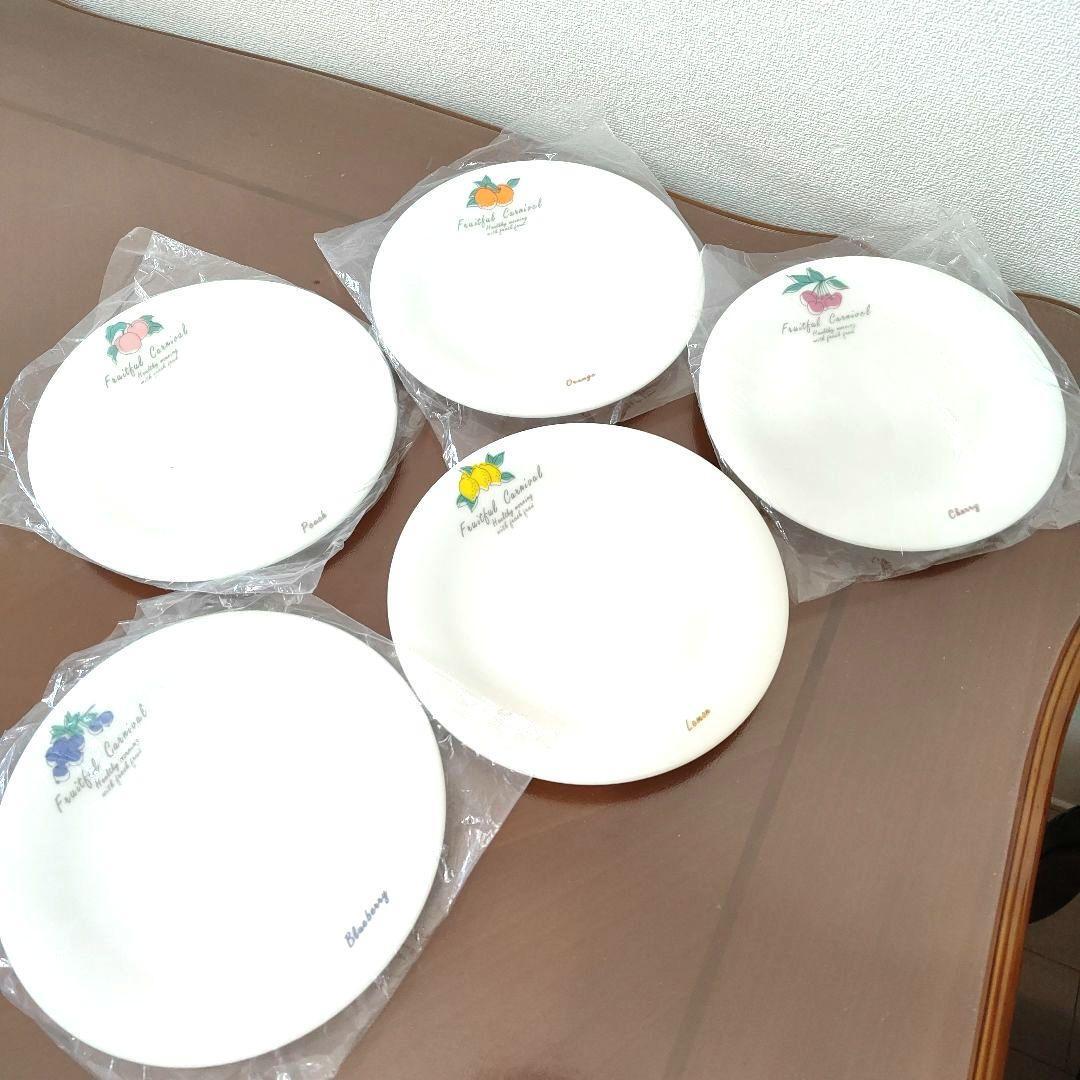 「たち吉」のとりわけ皿5枚セット 径17cm フルーツのワンポイント柄 ホワイト