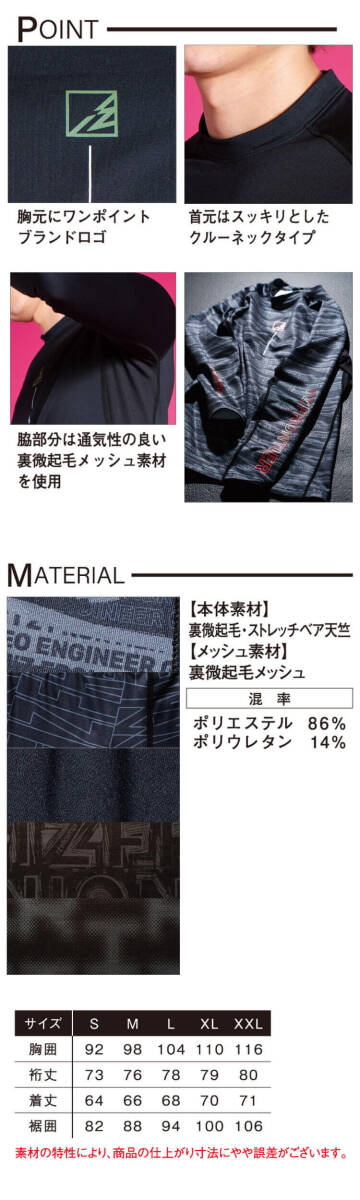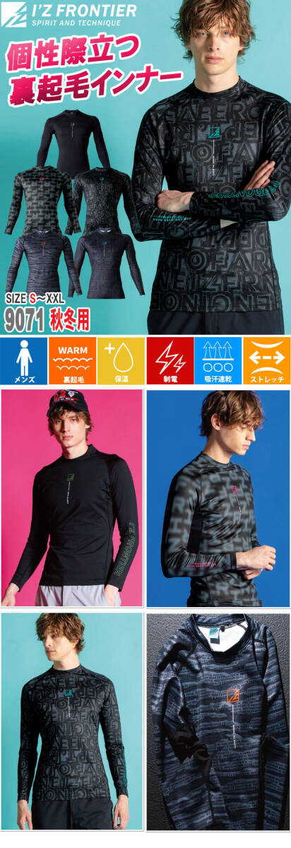 作業服 秋冬 アイズフロンティア コンプレッションシャツ 9071 Mサイズ 92ファントムB.