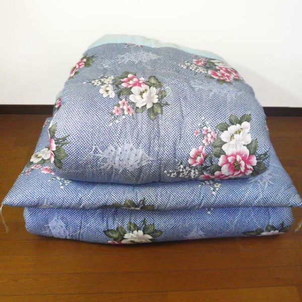 寝具 掛敷布団 シングル 和式 昔ながら 花柄 牡丹 ブルー(T08-1) ▽