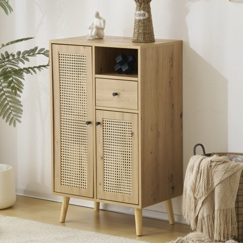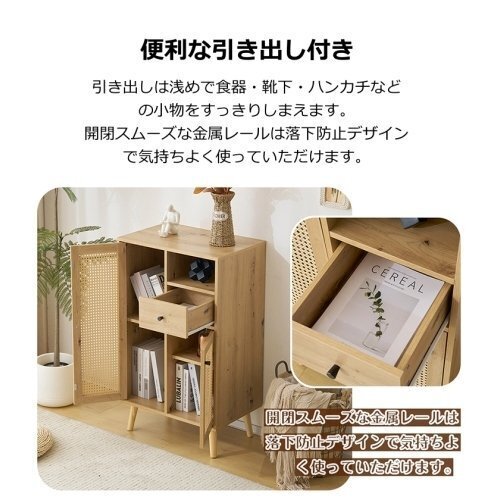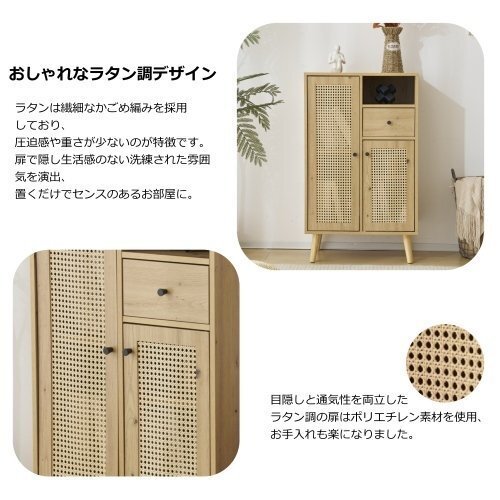 • 【おしゃれなラタン調デザイン】ラタンは繊細なかごめ編みを採用しており、圧迫感や重さが少ないのが特徴です。扉で隠し生活感のない洗練された雰囲気を演出、置くだけでセンスのあるお部屋に。目隠しと通気性を両立したラタン調の扉はポリエチレン素材を使用、お手入れも楽になりました。