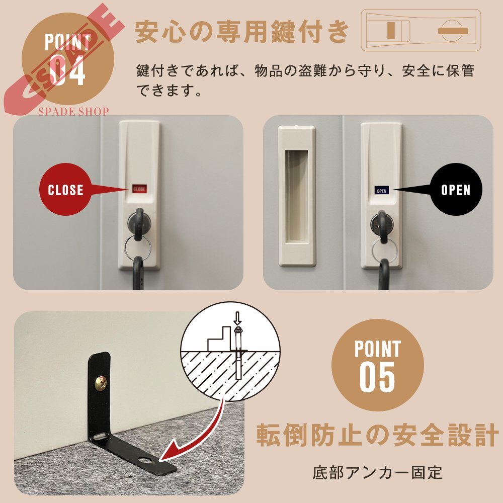 • 【引き戸タイプ】扉の開閉が邪魔にならない!開く時にドアを開けるスペースがいらないので、狭い場所でもスムーズにアクセスできます。大きく開けられるため、荷物の出し入れが簡単です!