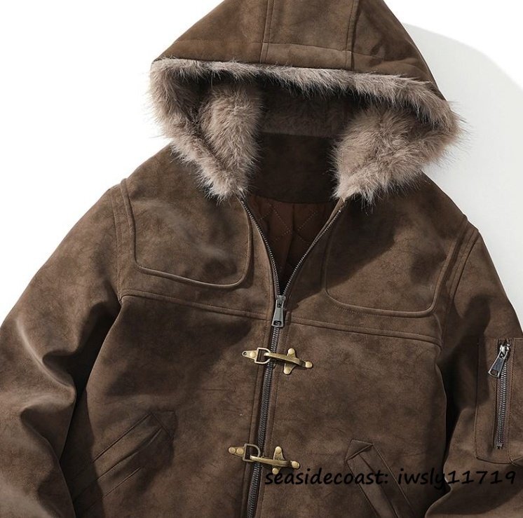 定価13万◆ムートンコート 秋冬新品 フード付き メンズ 保温 防寒 厚手 ダウンジャケット ファーコート ライダース ブルゾン 珈琲色 L