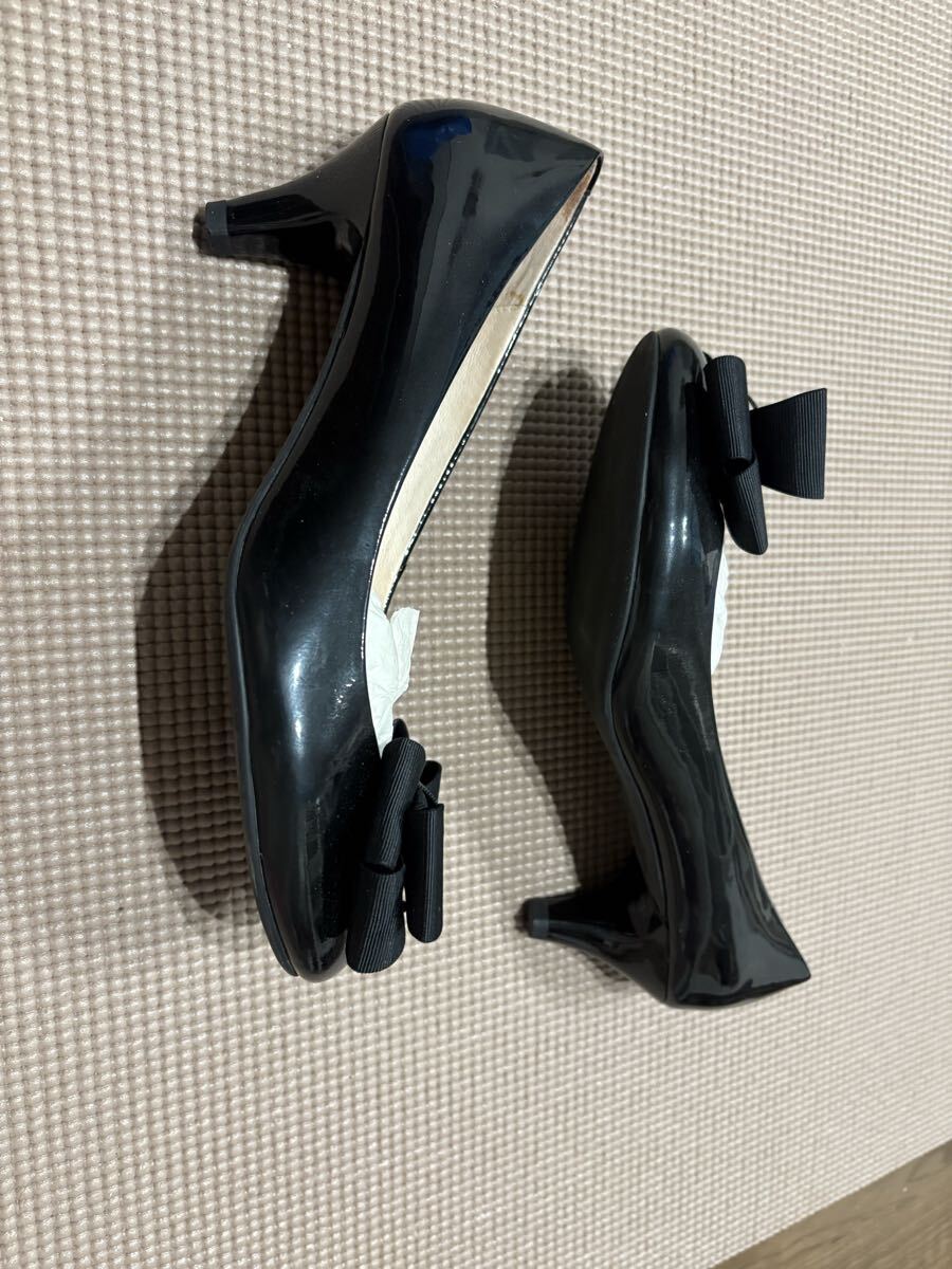エナメル素材の光沢が美しく、フォーマルにもデイリーにも使える一足です。
