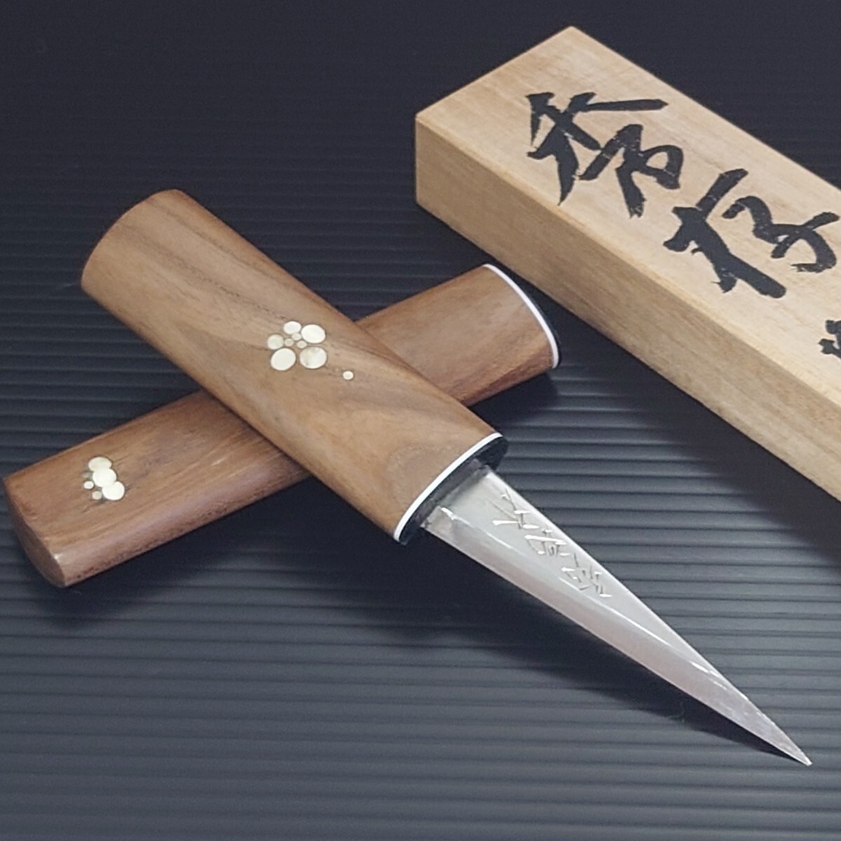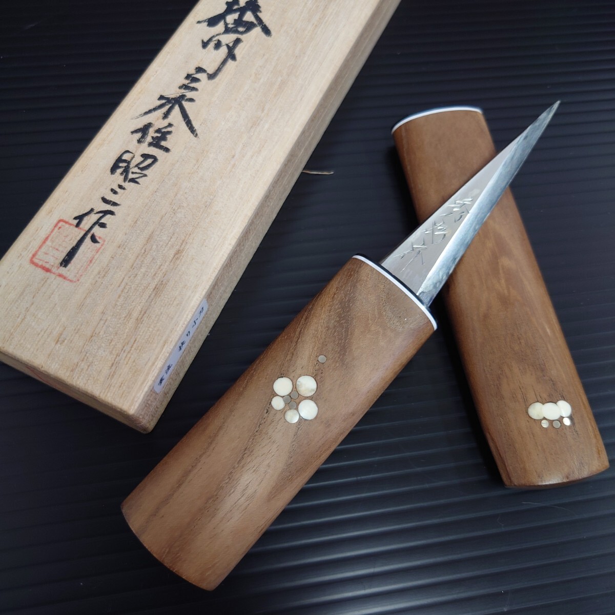 | 播州三木刃物 昭三作 秀存 雲流 快り小刀(池内刃物) 1本ずつ違う模様で美しい 安来鋼 青紙二号鋼+積層(10層)軟鉄 桐箱入(和式ナイフ) | |