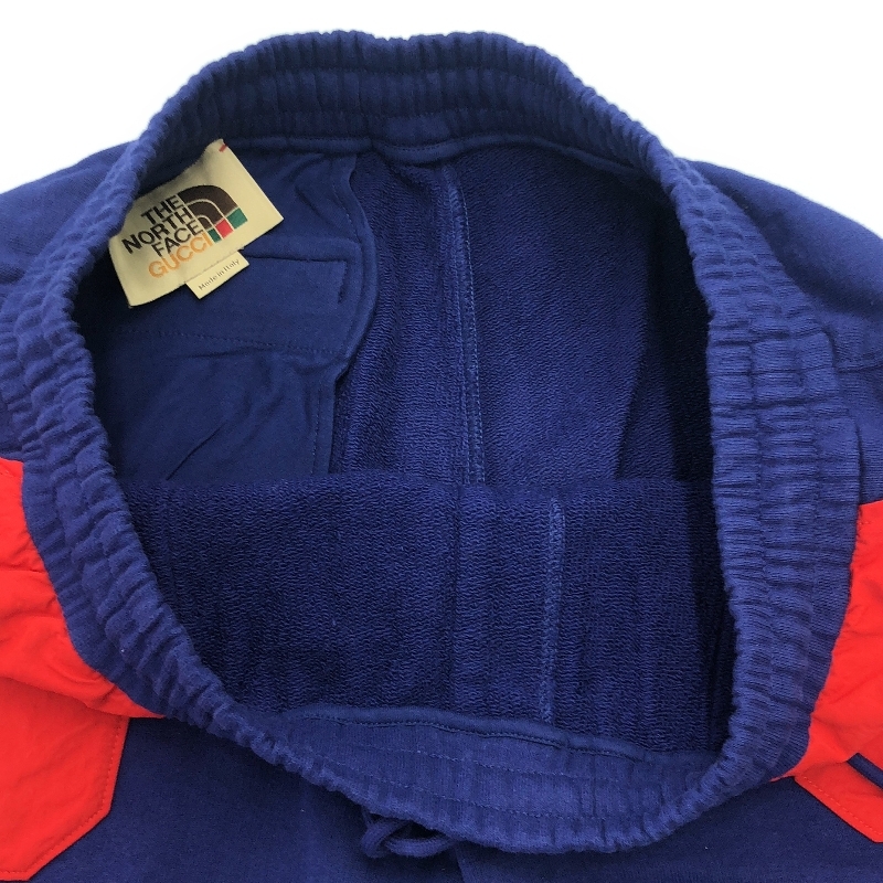 | 209999092789)THE NORTH FACE × GUCCI スウェットパンツ ブルー×オレンジ サイズL ザノースフェイス |