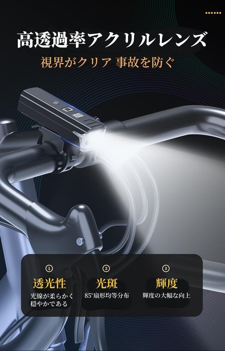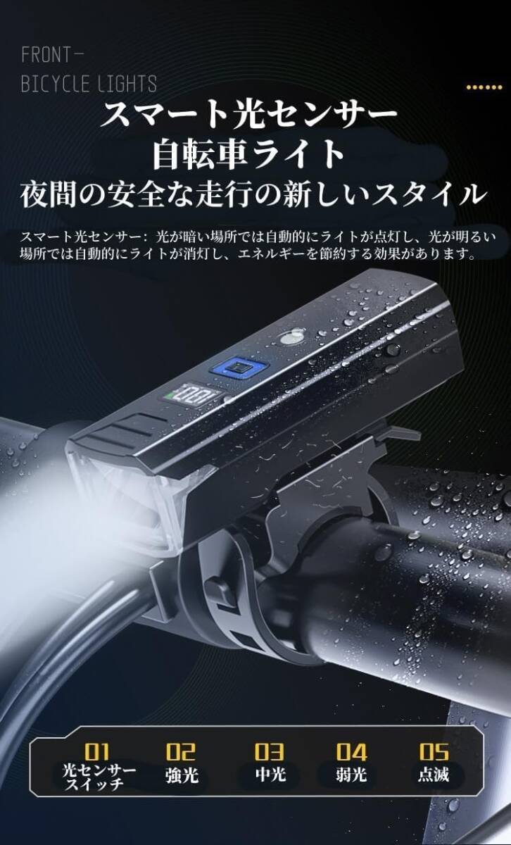 光センサー 自動点灯 自転車 ライト USB充電式 大容量3000mAh 電池残量表示 2100ルーメン LEDヘッドライト
