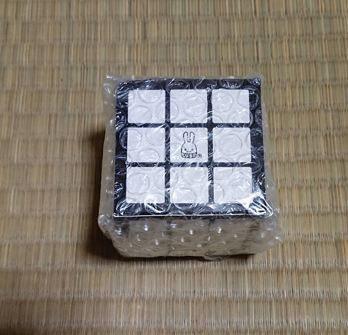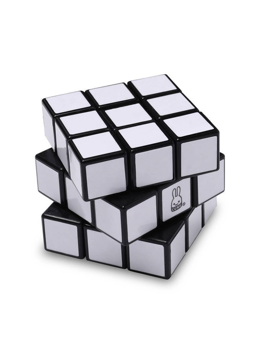 3×3のルービックキューブ。株式会社メガハウスさんにオーダーしました。グレースケールではなくすべて全く同じ白なのでクルクルするだけのものです。1面のセンターにウサギロゴ、逆面にルービックキューブのロゴが入ります。 ルービックキューブはメガハウスの登録商標です。