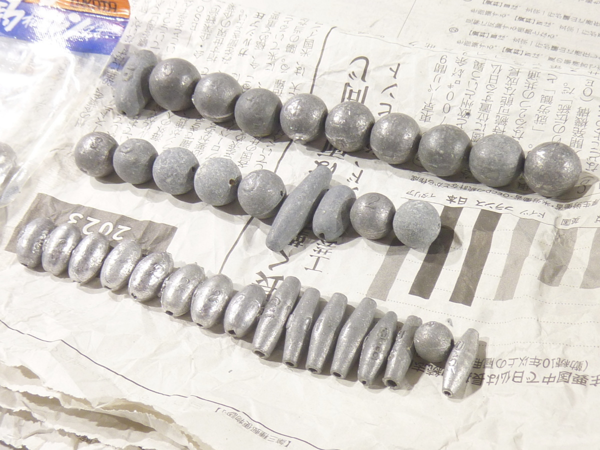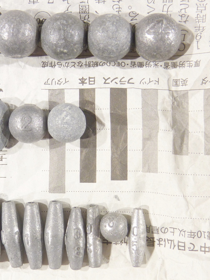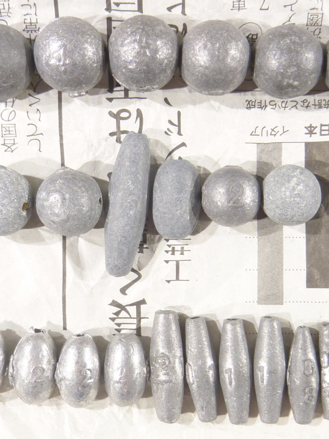 【 中通し錘 ( ナツメ なつめ グミ ぐみ ギンナン ぎんなん 銀杏型 長オモリ オタフク おたふく お多福 カメ型 亀型 かめ形 小判型 こばん型 長型 丸形 丸型 丸玉 丸オモリ ) 】