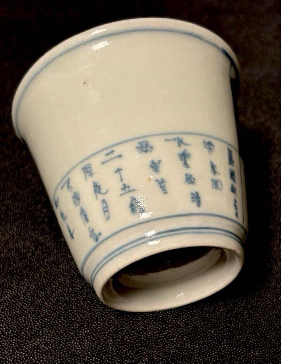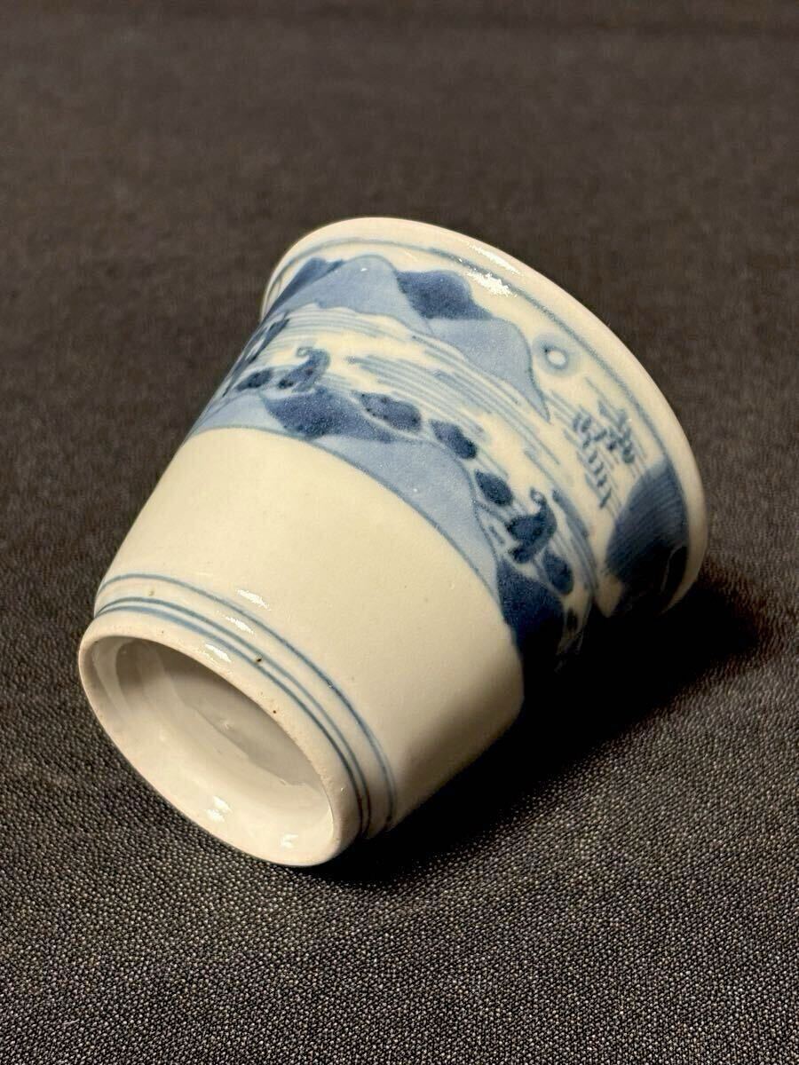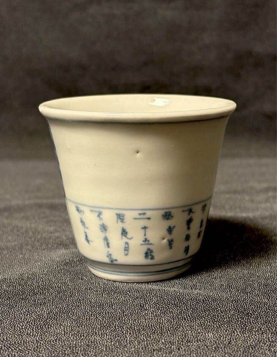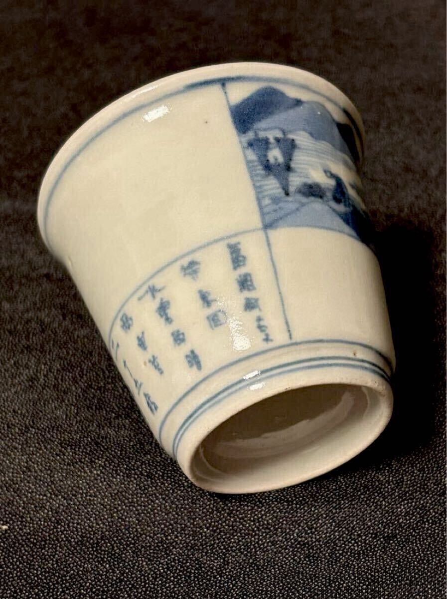 垢抜けたデザインの古伊万里筒型です。山水画と漢詩が片身変わりで描かれた非常に珍しい絵付けです。余白を十分にとったもので非常にモダンな印象、盛期伊万里の逸品です。状態はうれしい無疵完品。サイズは高さ6、口径6.8、高台3.9センチくらいです。この機会にいかがでしょうか。当方酒器を中心に出品しております。よろしければ出品者の他の出品もご覧ください。発送はヤマト便で行わせていただきます。送料は一律800円(沖縄1500円、北海道は1200円、離島は1800円)です。ご不明な点はご質問欄よりお気軽にお問い合わせください。