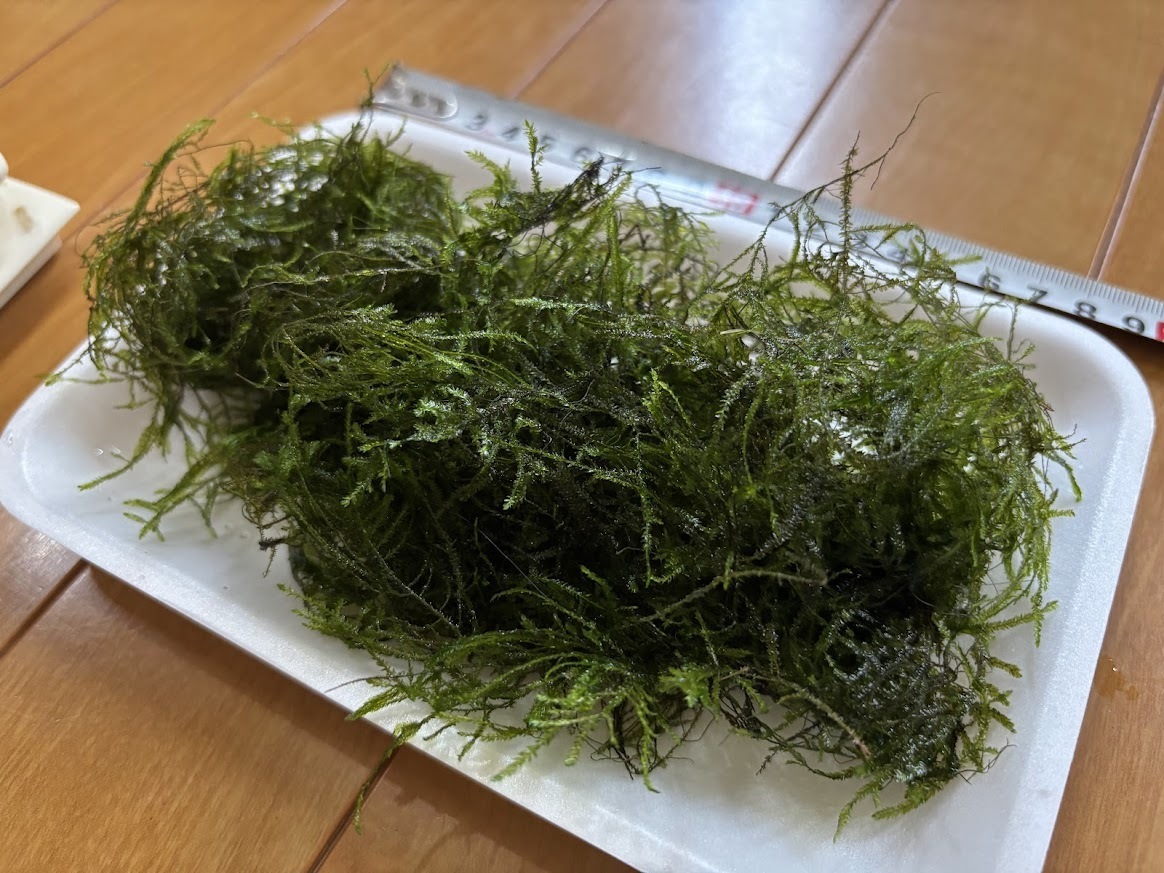 現在トリミングで集まるウィローモスは写真のものより色が黒っぽいものが多いです。ご承知おきください。