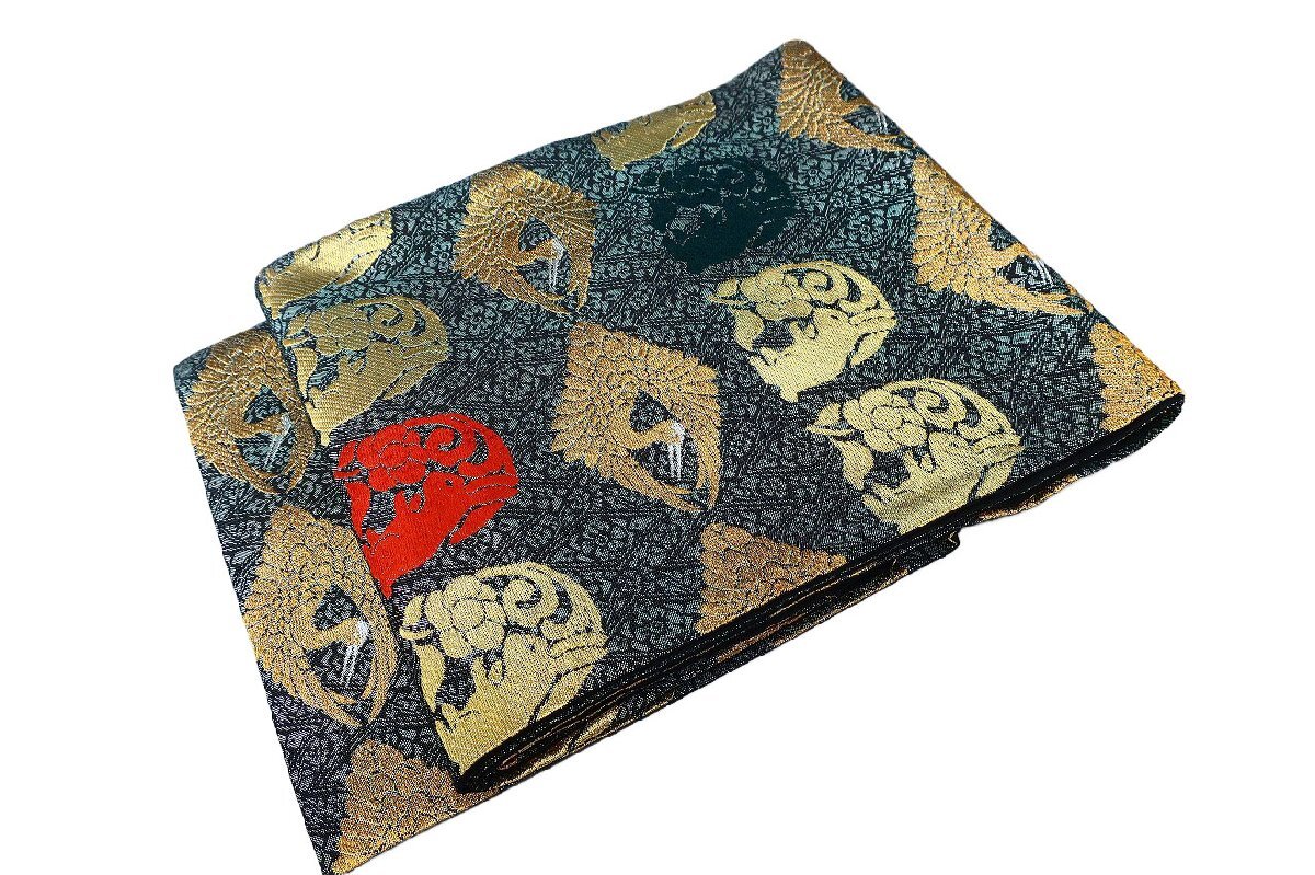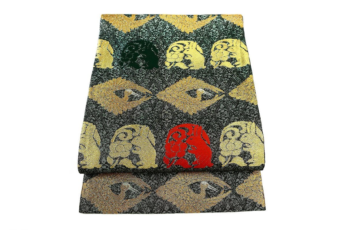 | 美品 袋帯 グレー系 花うさぎ 飛び鶴 長さ4m39cm 六通柄 仕立て上がり お洒落 正絹 フォーマル 着物フィ m-8451/B> |