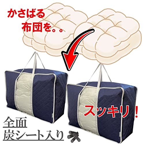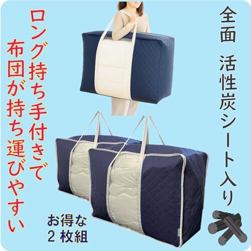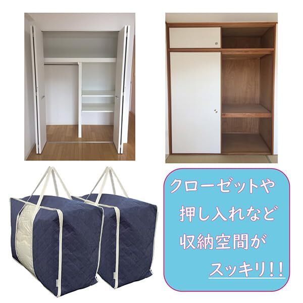 藍色 2枚組 イニコライフ 布団収納袋 2枚組 立てられる 持ち運びやすい 全面 活性炭シート入 シングル - ダブルサイズまで