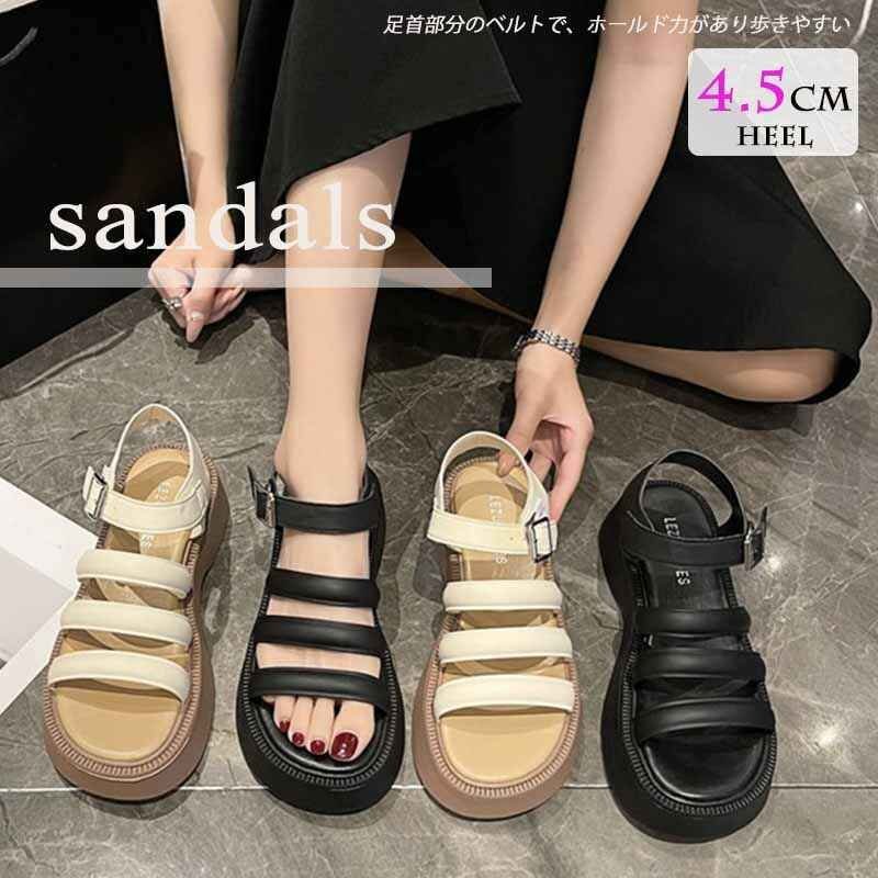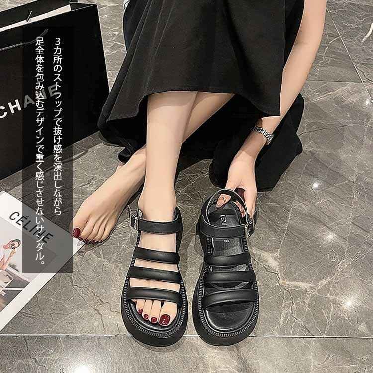 ・3カ所のストラップで抜け感を演出しながら足全体を包み込むデザインで重く感じさせないサンダル。