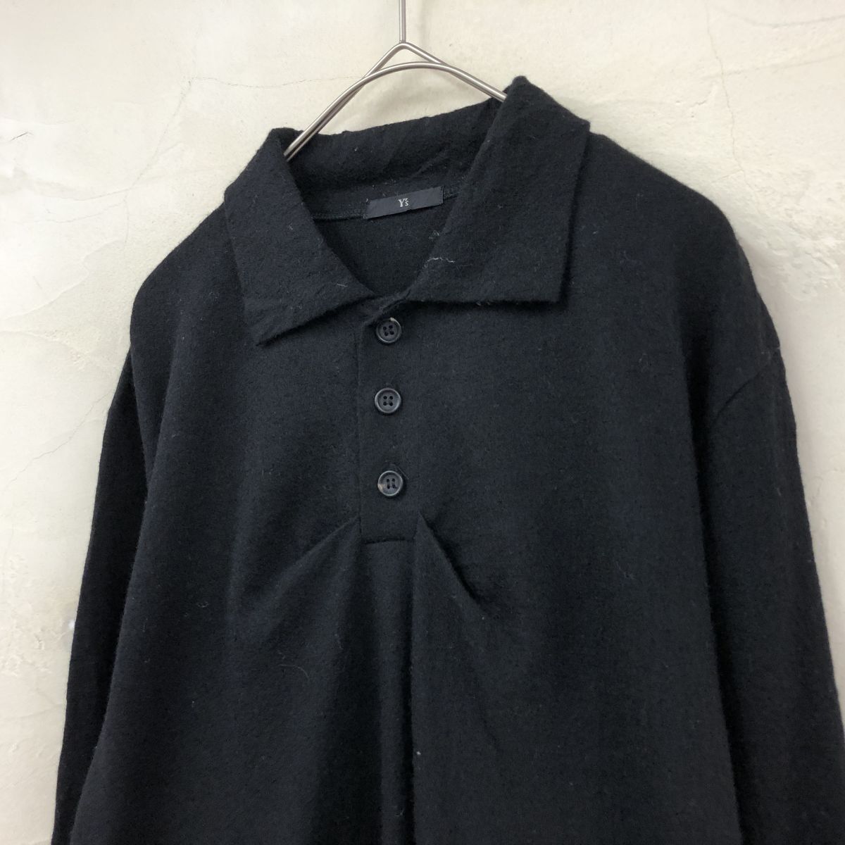 2O3153-N◆old◆ Y's ワイズ ヨウジヤマモト 長袖ニット シャツ プルオーバー 薄手 レディース ◆ ブラック ウール 古着 モード